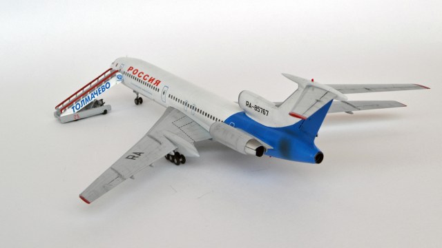 Исправлены косяки набора: удалён лишний водосток над передней правой дверью, укорочены створки ПОШ, добавлен ВЗ обдува генератора 2 двигателя, изменен угол установки стабилизатора, расточены ковши реверса и сопло 2 двигателя, укорочены основные стойки для характерной просадки на хвост. Окрашено ганзой и тамией, финальный лак - полуматовый TS-79, тонировка смывкой MiG cold grey и масляной краской фирмы Wilder, декаль от Ascensio.
