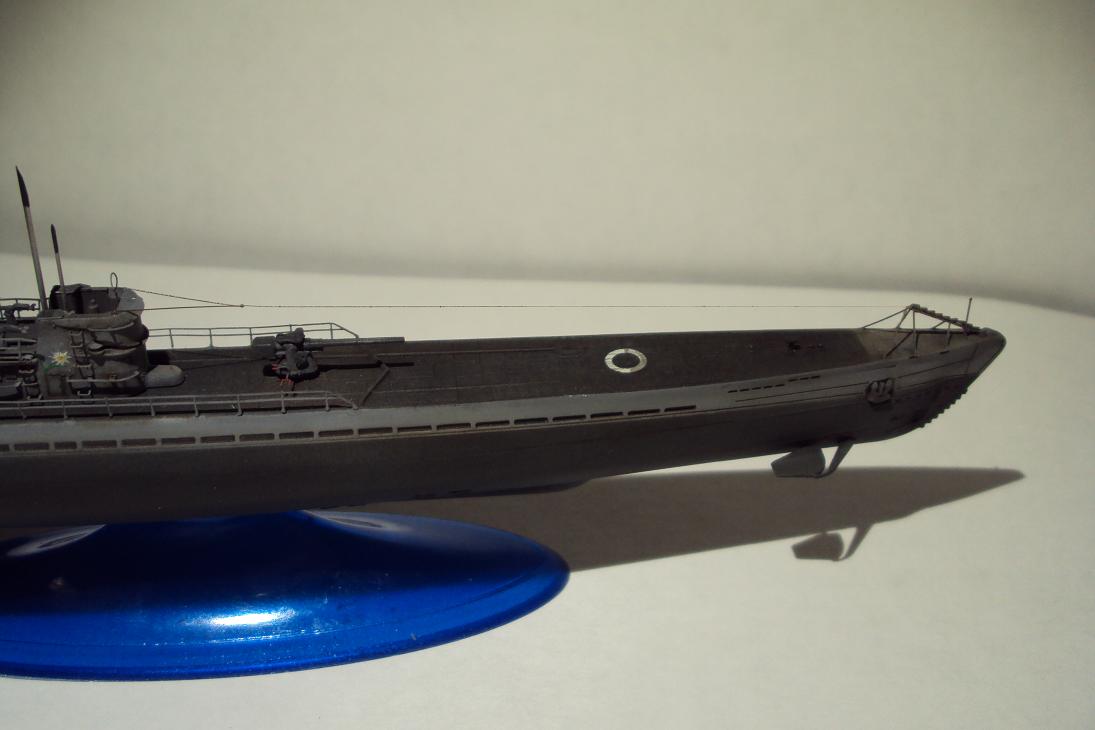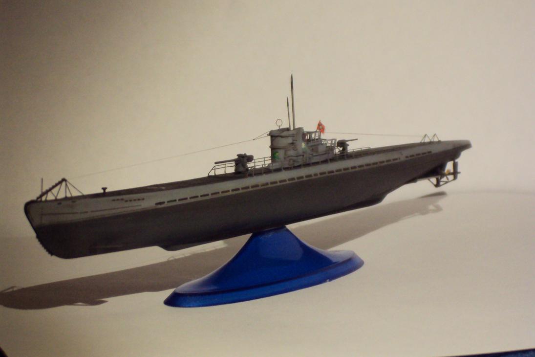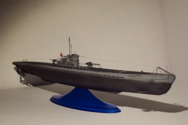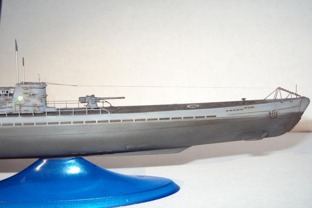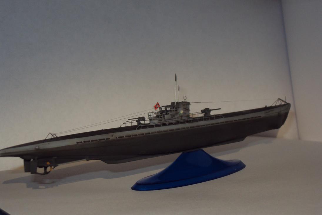 Модель немецкой подводной лодки, в постройке использовались фототравленые детали, антенны сымитированны из тянутого литника. Покрашено краской. Спасибо за внимание.