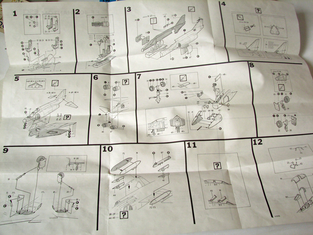 Самолет всем известный, модель в варианте разведчика от отличной фирмы ЭСКИ, к сожалению уже не существующей, посему, наверное, модель является раритетом. Несмотря на годы пластик мне очень нравится и, думаю по аналогии с Ф-100 от этой фирмы, имеет отличную сходимость. Набор в мягкой коробке с верхней загрузкой содержит 5 литников и прозрачная рамка фонаря и деталей фотоаппаратуры, по тем временам хорошая деталировка, тонкая внутренняя расшивка и иммитация клепа, декаль дана на 2 варианта. Модель досталась мне в начале 90-х, так и не собрал,, сейчас, перейдя на 1/48 масштаб, имею фантомы в 1/48 от Хаси и Академа. Модель продается, по этой причине делается обзор того что имеется в коробке.