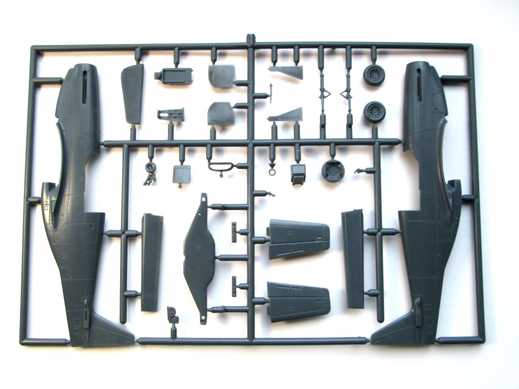 Пластик темно-серого цвета, хорошего качества. Облоя и утяжин не наблюдал. Ничем не отличается от содержимого коробок с Мустангами от этого производителя. Обзор одной из них уже публиковал недавно Владимир, http://karopka.ru/community/user/8162/?MODEL=471781, добавить тут нечего.