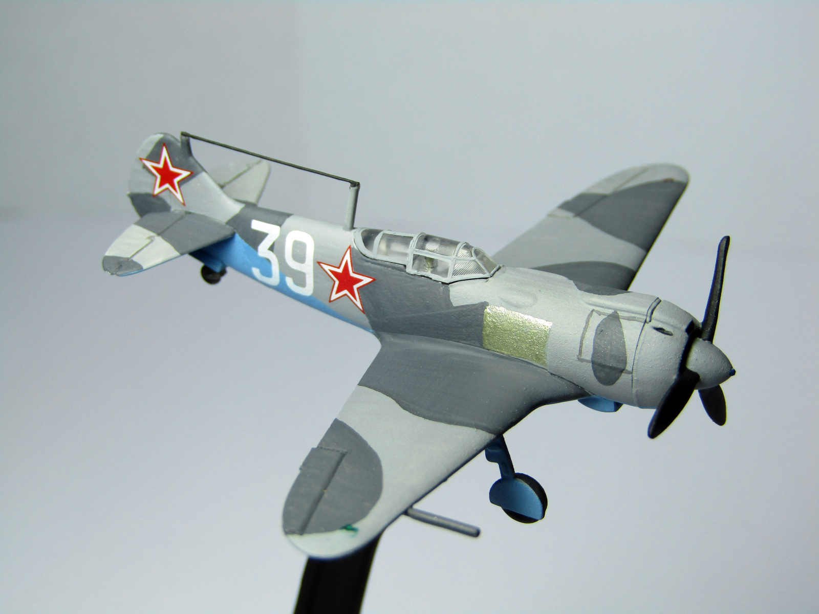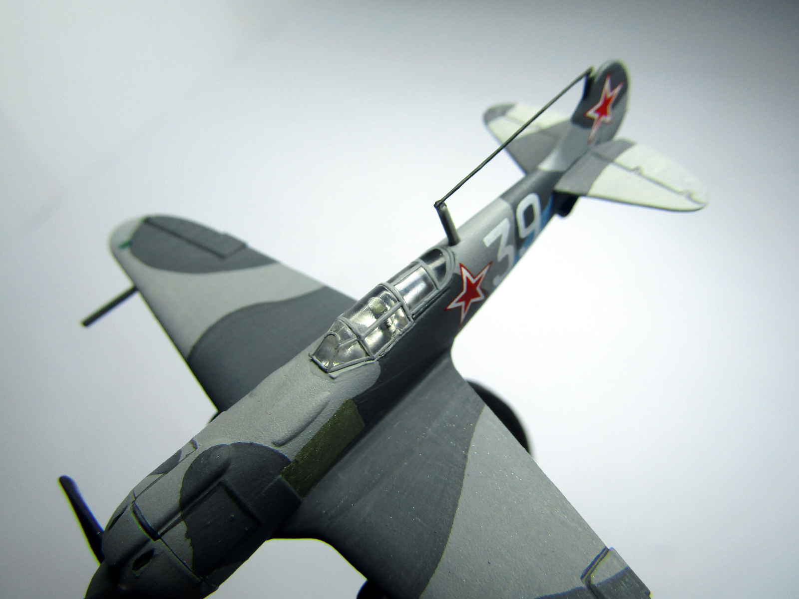 Масштаб - 1/144, длина модели - примерно 6 см. Красил кистью, темперными красками, покрывал матовым лаком revell. Из дополнений - только антенна из медной проволоки.