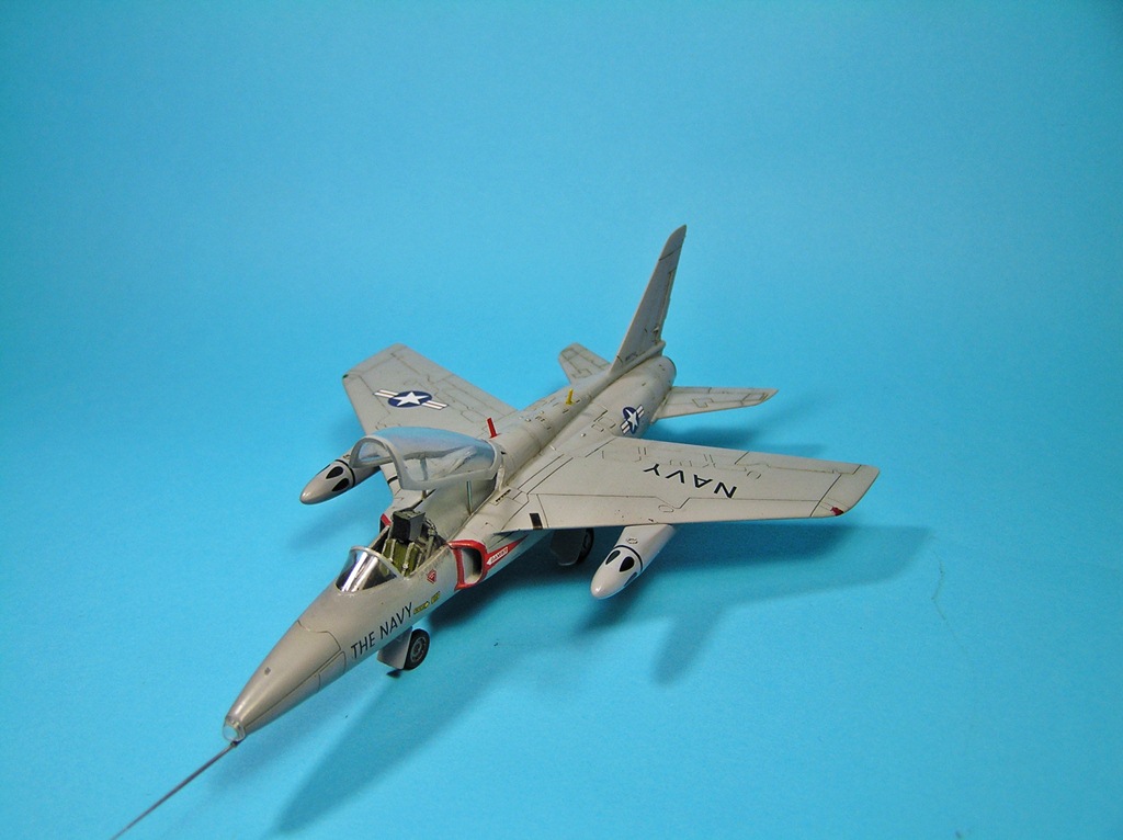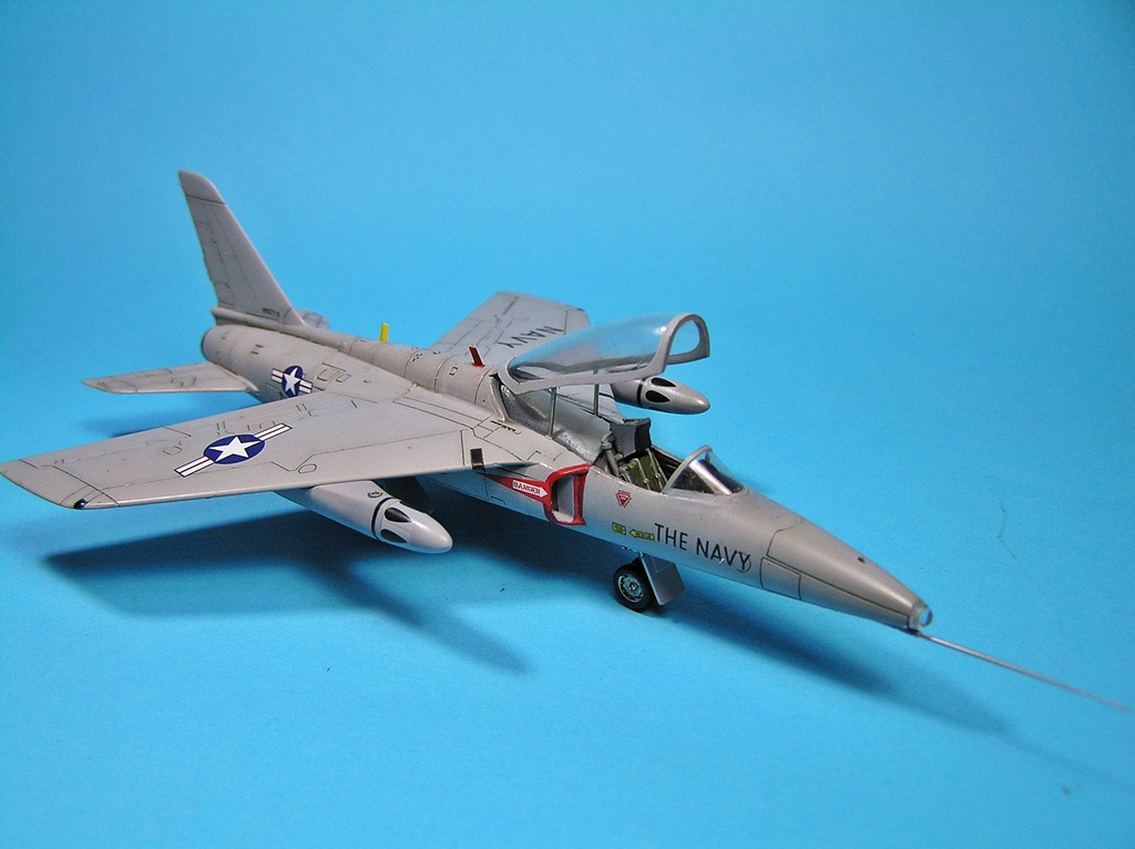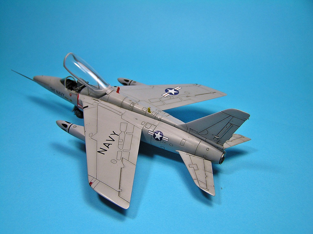 Хороший Oscar EW5894 Phallus tactical fighter bomber! Смущает БАНО на крыльях (см. файл, на кадрах из фильма и фото самолетов такое же наблюдается). И есть ощущение, что (судя по кадрам из фильма) они закрывали вторую кабину чем-то жестким (похожим на гнутый лист фанеры?) (который к тому же в разных кадрах установлен по разному). Но при этом панель приборов в задней панели не закрывалась. И нарисованных пятен на блоках (НУР) должно быть 8, а на модели (считал-считал) 6-7. Это просто небольшое "жужужу"