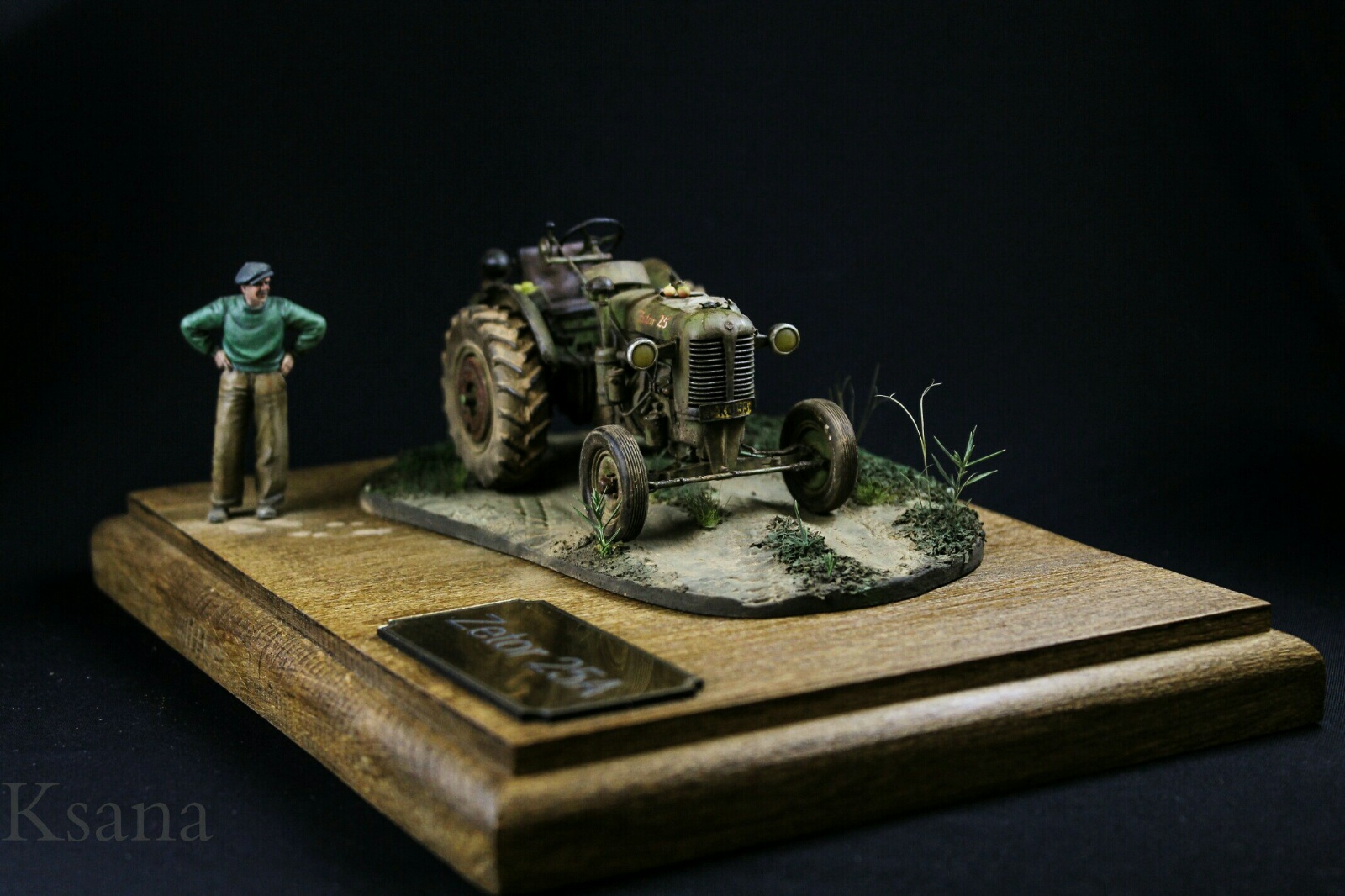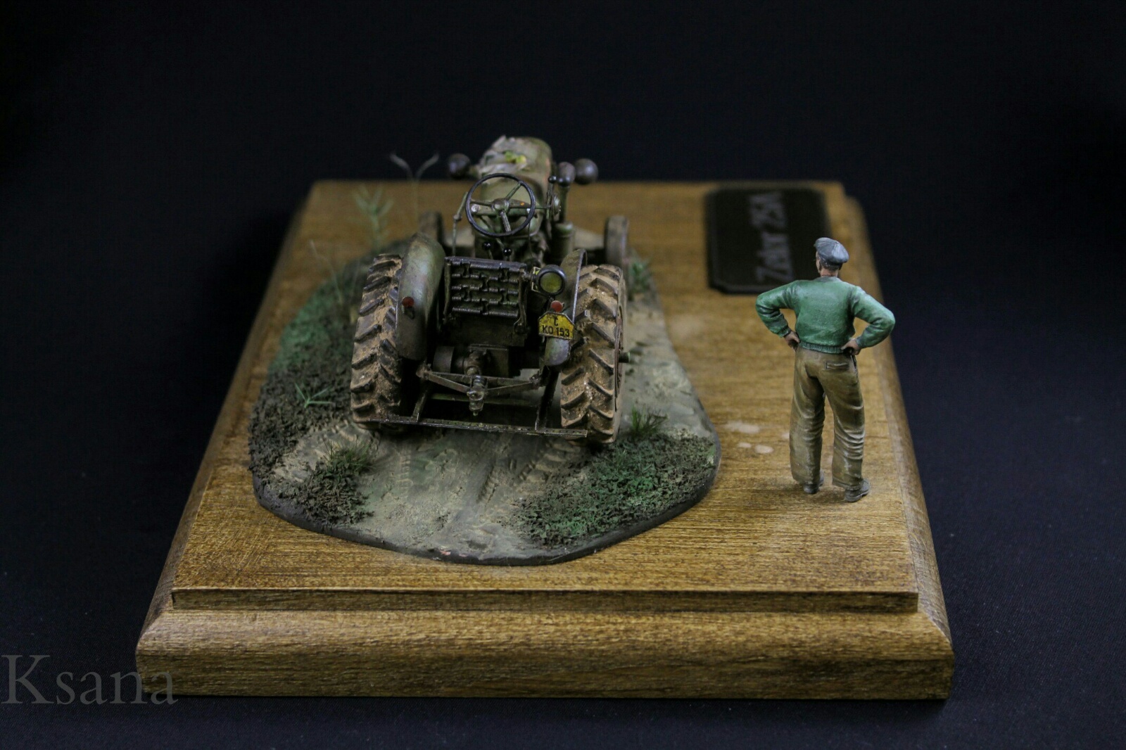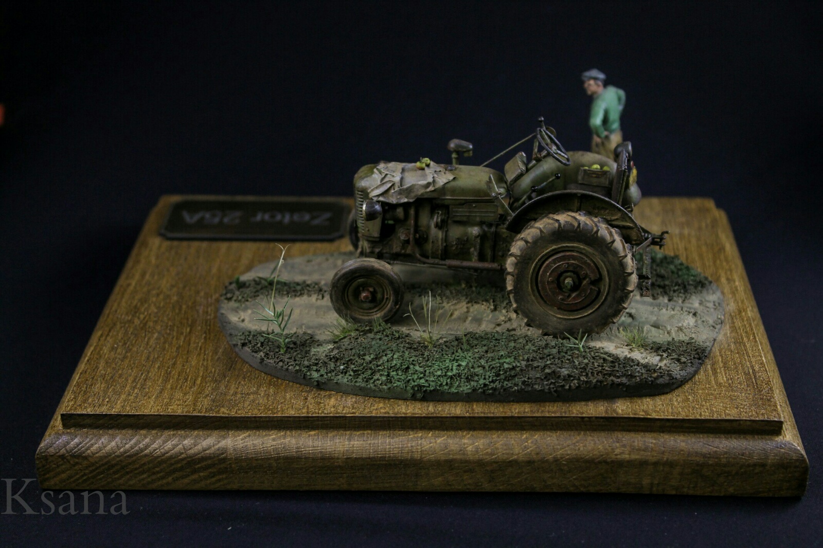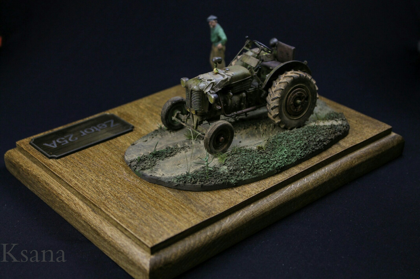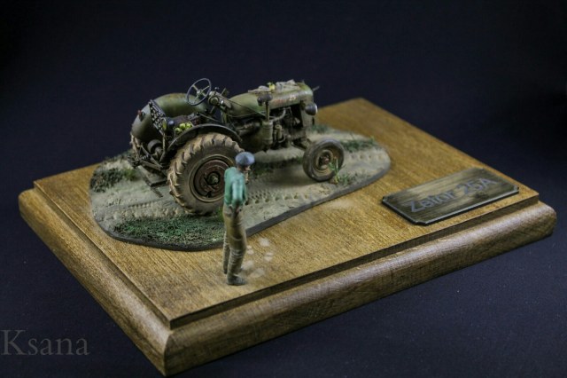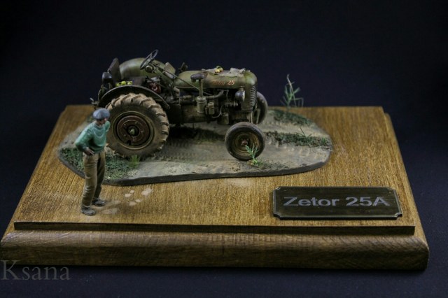 Добрый день дорогие друзья. Недавно вот зарегистрировался и решил сразу показать вам свою работу. Трактор Zetor от фирмы SKP. Скажу сразу, это моя не первая работа в смоле, но таких дров я не ожидал. Модель собиралась не долго около месяца по пару часов в день. Наплевался по полной но осилил. Из доработок. Были сделаны шланки, проводка, тросики. Знал что буду делать виньетку и добавил кое что из своего. Фигурка водилы от Evolution Подставка из бука самодел Краски: Tamiya, AK Все грязнения и прочее химия от АК Извиняюсь сразу за текст писатель из меня не какой. Всем спасибо и приятного просмотра. P.S. Отдельное спасибо моей супруги за покраску.
