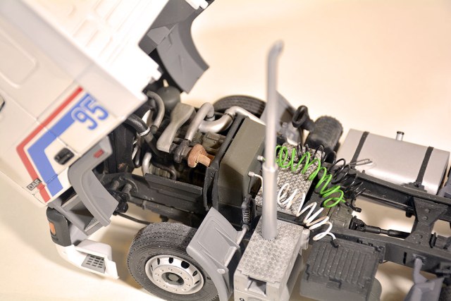 добрый вечер, по модели не нравится отсутствие следов эксплуатации, бак "без солярки" седло не знает прицепа, на крышке АКБ нет потертостей, ресивер под АКБ и воздушным фильтром тоже всегда имеет сколики и потертости. ну и ложка дегтя это турбина при всей "новизне" тягача она у вас столетняя.замки кабины тоже должны иметь следы смазки. и недоработка производителя это отсутствие тепло-шумоизоляции под кабиной. фары тоже как то не получились у вас.