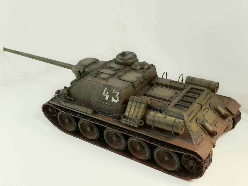 Работа понравилось. Единственно мне кажется перебор с ржавчиной, лючки классно смотрятся, и верх корпуса, а потом резко по всему периметру краснота(ржавчина - как я понял), особенно бросилось это на катках!