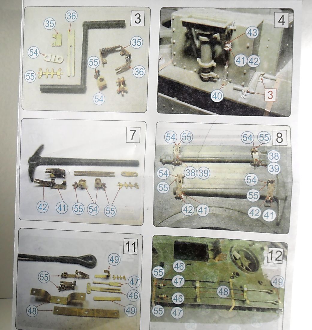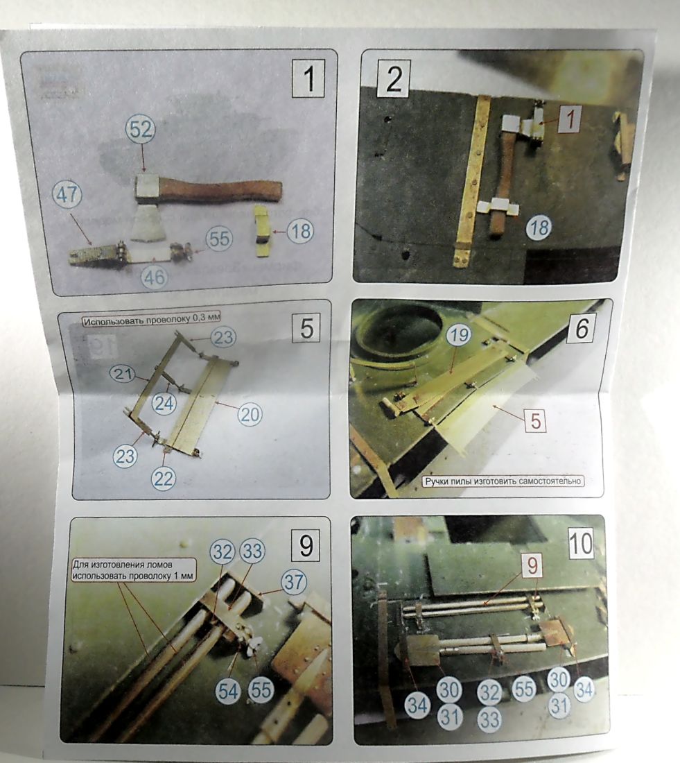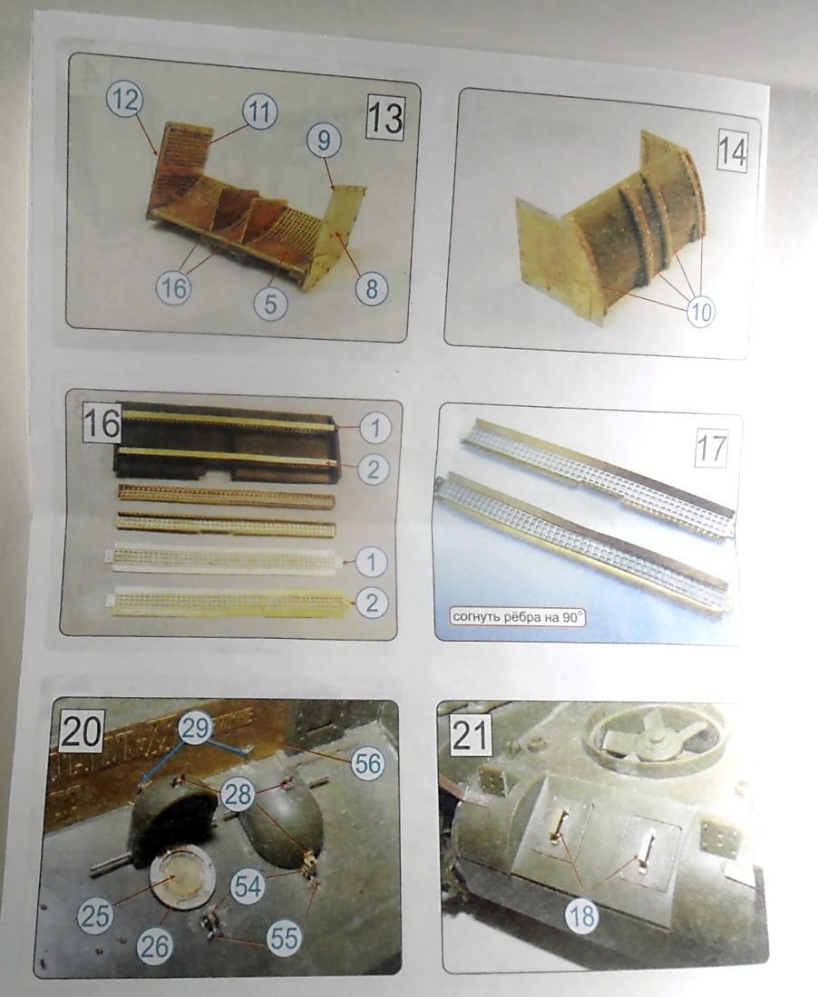 Фототравление от "Звезды" (№ 3667) включает в себя одну довольно большую плату с элементами решеток, сеток, различных креплений шанца и других мелких деталей. На первый взгляд (на платке) все очень симпатично, красиво и аккуратно, толщина фототравления как у нормальных производителей, а не толстый несгибаемый кусок металла как у "АСЕ". Инструкция в виде фотографий собранных элементов модели и травления с нумерацией, все довольно ясно и понятно. Как все это будет крепится на модели увидим при сборке. Цена этого "чудо-травления" - 730 руб. в "Я-моделисте".