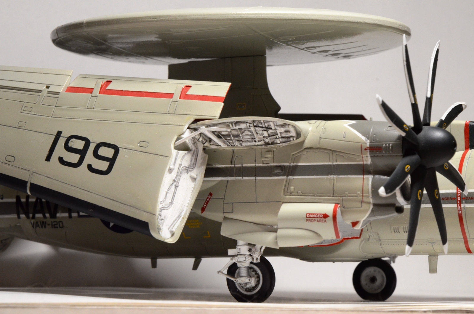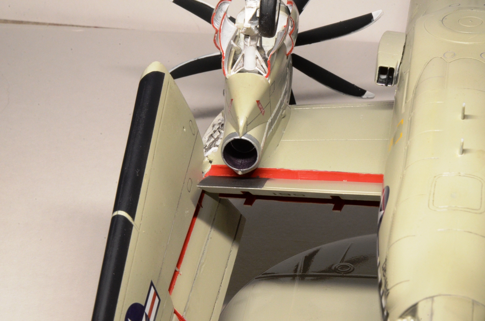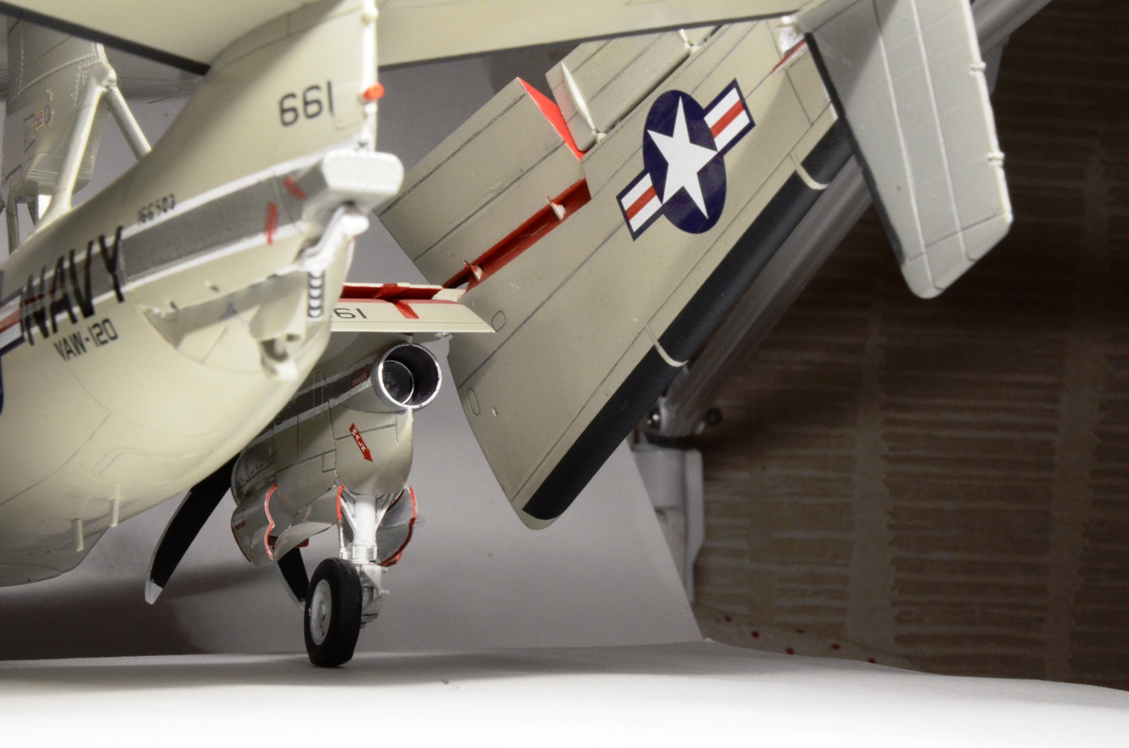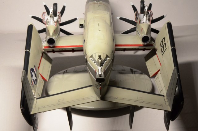 Я конечно понимаю, что модель крупная и хранить ее проблематично, но все таки в полетной конфигурации он смотрелся б гораздо грандиознее. Тем более такая богатая механизация крыла выделенная красным цветом. Евгений, а тарелка у него вращается? Кстати, на фото самолета в центре тарелки видно некую нахлобучку. А у Вас там все ровно да гладко... Как так? :-)
