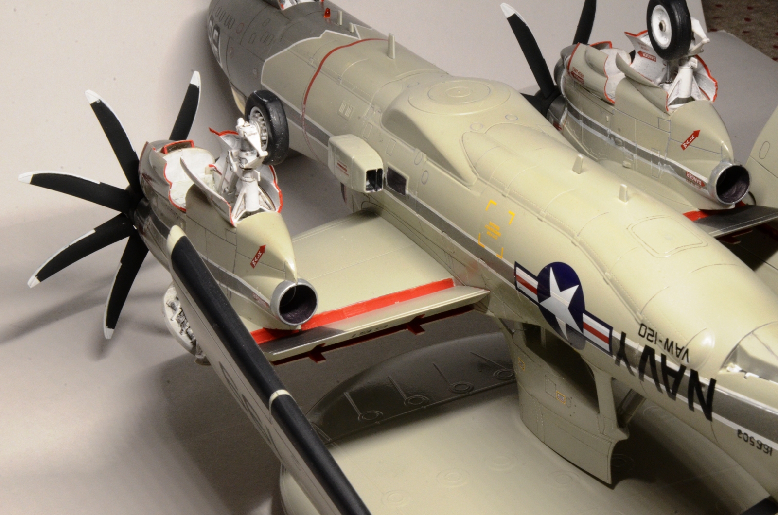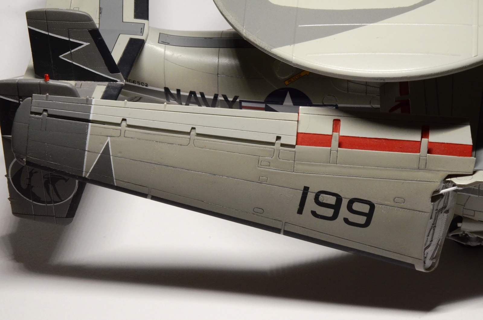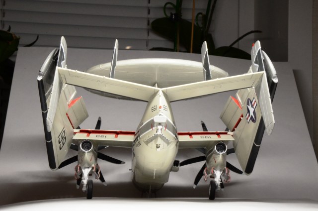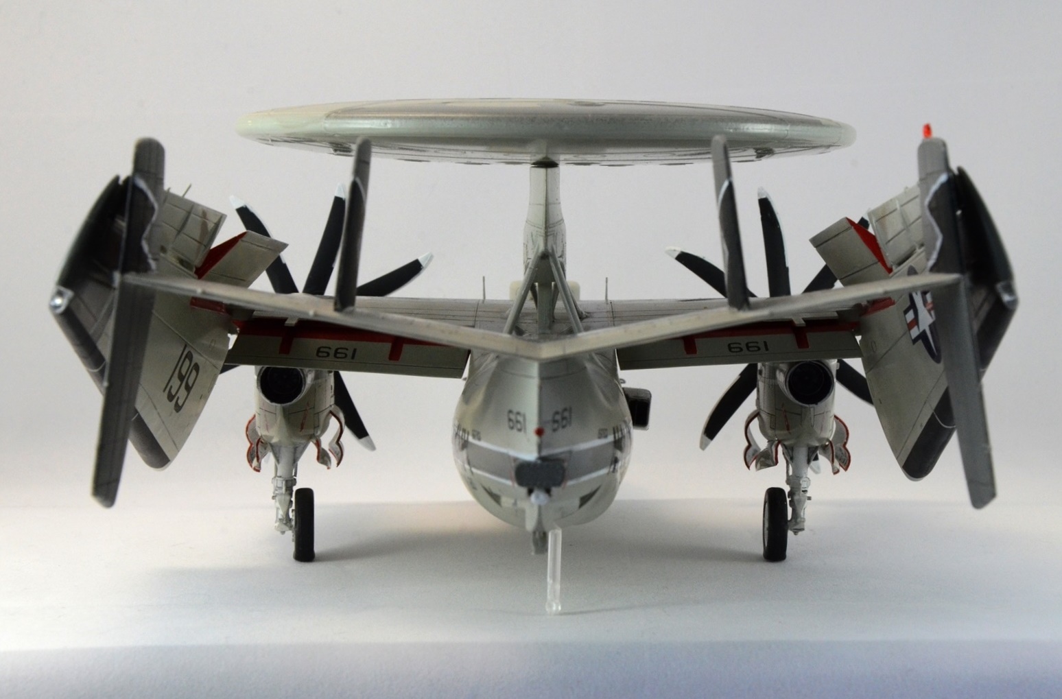 Я конечно понимаю, что модель крупная и хранить ее проблематично, но все таки в полетной конфигурации он смотрелся б гораздо грандиознее. Тем более такая богатая механизация крыла выделенная красным цветом. Евгений, а тарелка у него вращается? Кстати, на фото самолета в центре тарелки видно некую нахлобучку. А у Вас там все ровно да гладко... Как так? :-)