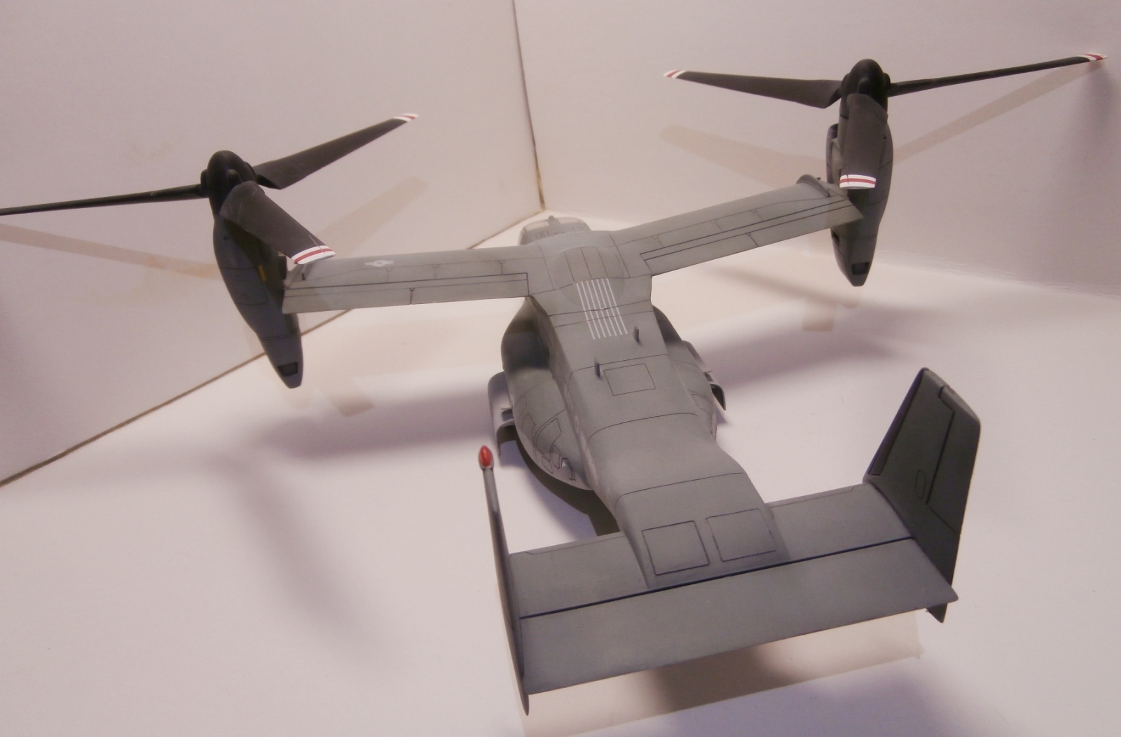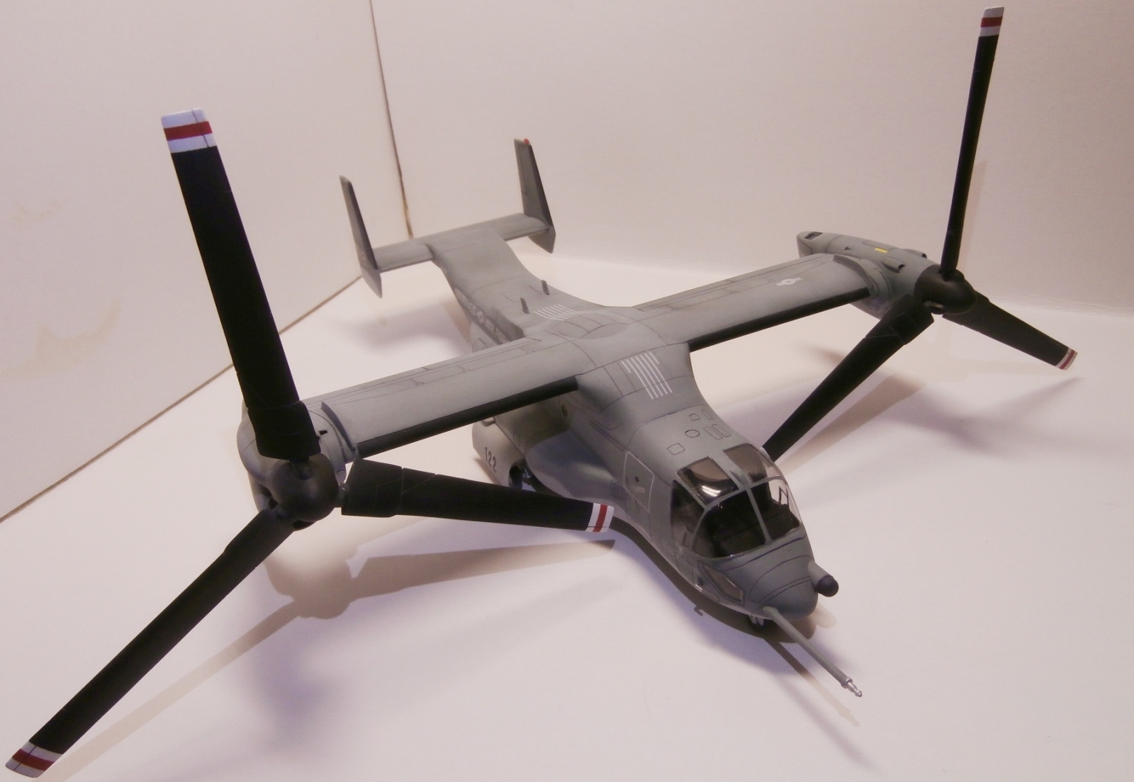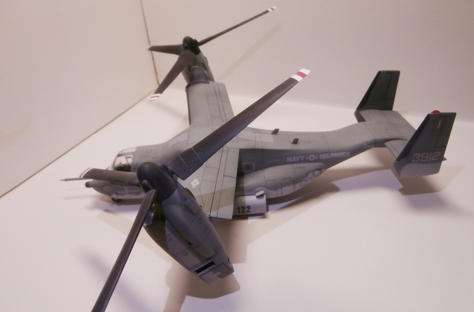Представляю вам свою крайнюю поделку - модель конвертоплана V-22 Osprey. В силу жизненных обстоятельств возможности заниматься моделизмом не было ни времени ни желания. Это работа для восстановления навыков. Модель собиралась на заказ. Сборка из коробки, из доработок - измененная на внутреннюю расшивка. Окраска по мотивам. Окрашено акрилами Тамия. Глянец - Футура. Смывка - средство для мытья тарелок с гуашью. Матовый лак - Тамия XF-86. Италовские деки - гуано редкое. Местами осталось легкое серебрение.