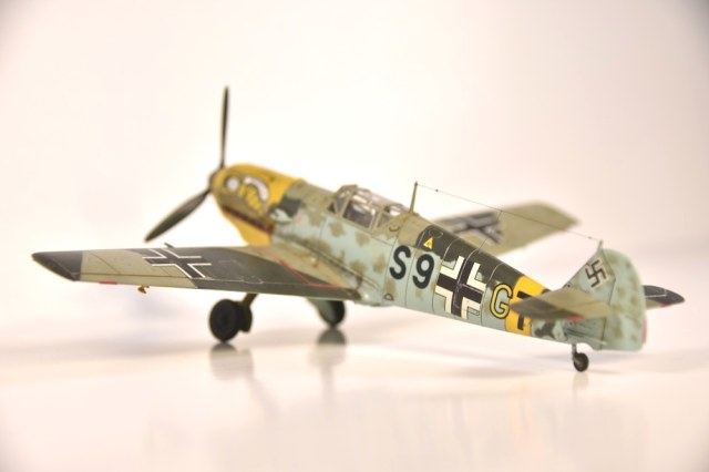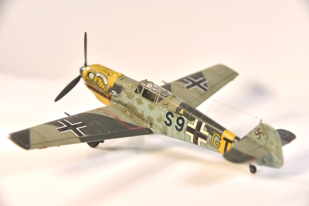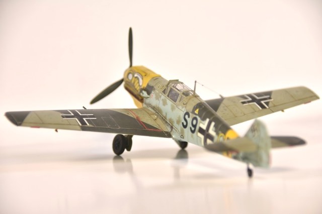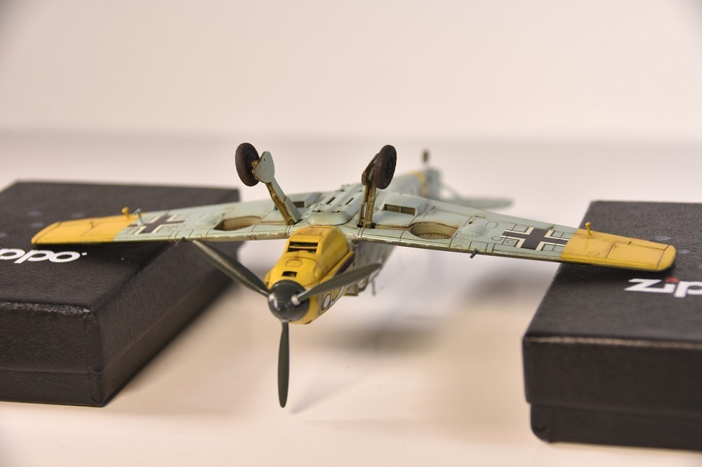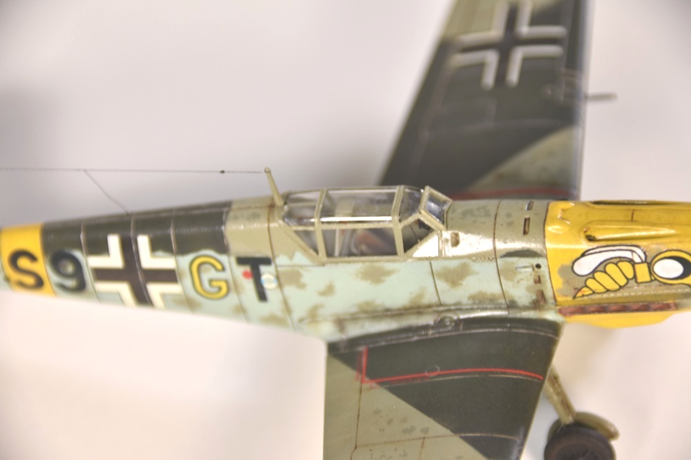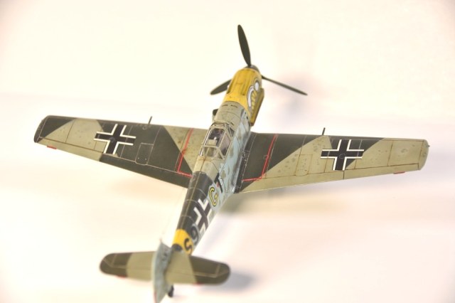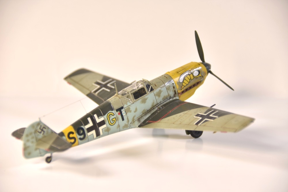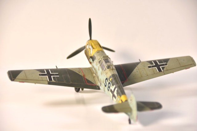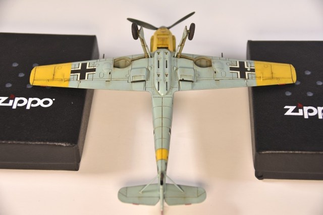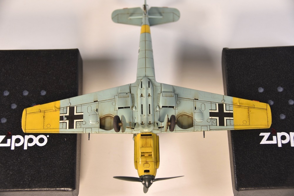 В целом, модель смотрится довольно неплохо, но пятна явно не удались и "тянут" ее вниз.Я на фото в районе эмблемы в виде осы не разглядел мазки краски, которые так четко проступают у вас на модели. По цветам: то ли вы фото перевысветлили, то ли РЛМ-02 бледноватый, не знаю. И еще один момент: скажите, пожалуйста, что это за мелкие пятнышки, которыми покрыты верхние поверхности крыльев, вот не пойму я никак. К чему действительно нет никаких претензий-это к нижним поверхностям, получилось на славу.