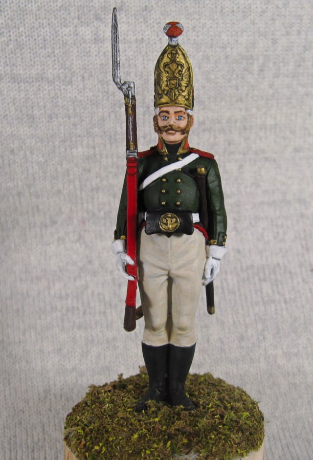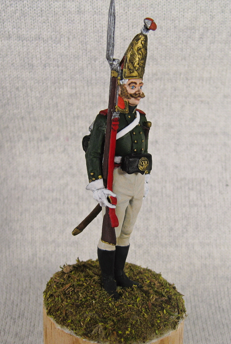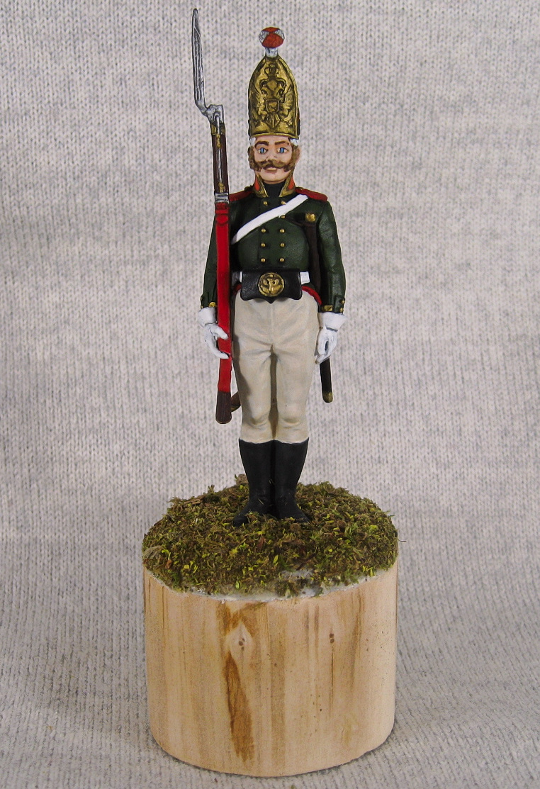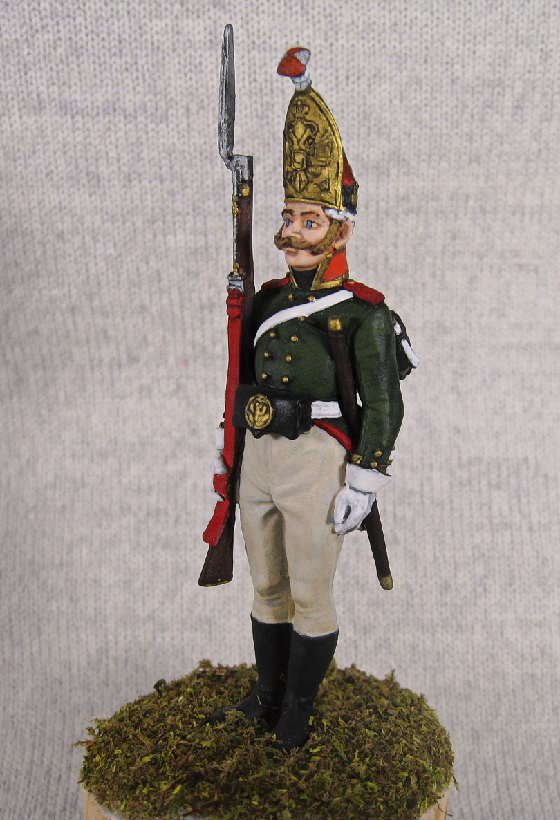 Здравствуйте. Вот такой унтер. Заинтересовало сочетание цветов - оранжевый инспекционный цвет - оранжевый (огненный) Московская инспекция, черный околыш митры, красные погоны (первый полк инспекции).