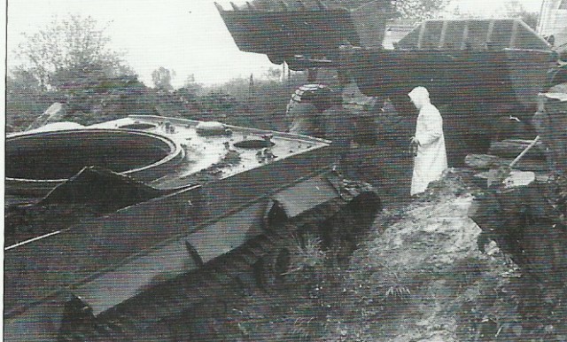 Про люки верно подмечено, я читал, что многие родные люки пропали и их заменили чем попало, а так как деталей танков там в те времена было предостаточно поставили, что подошло видимо.. Крылья еще были на фотографиях во время вытягивания из канавы, а потом им видимо кто-то приделал ноги как и глушителям.. Скорее всего коллекционеры - танк-то ведь не охраняется никак