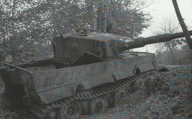 Полистал тут литературку, без всяких версий это Тигр из 102 (502) тяжелого танкового батальона СС, командир танка унтершарфюрер Реисске. О данном танке имеется запись в журнале боевых действий 102 ТБ. танк брошен 20.08.44 из-за многочисленных технических неисправностей, в том числе поломки мотора. Записан как не боевая потеря.