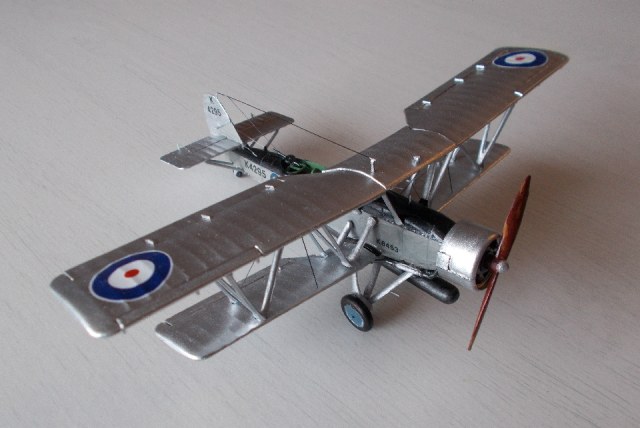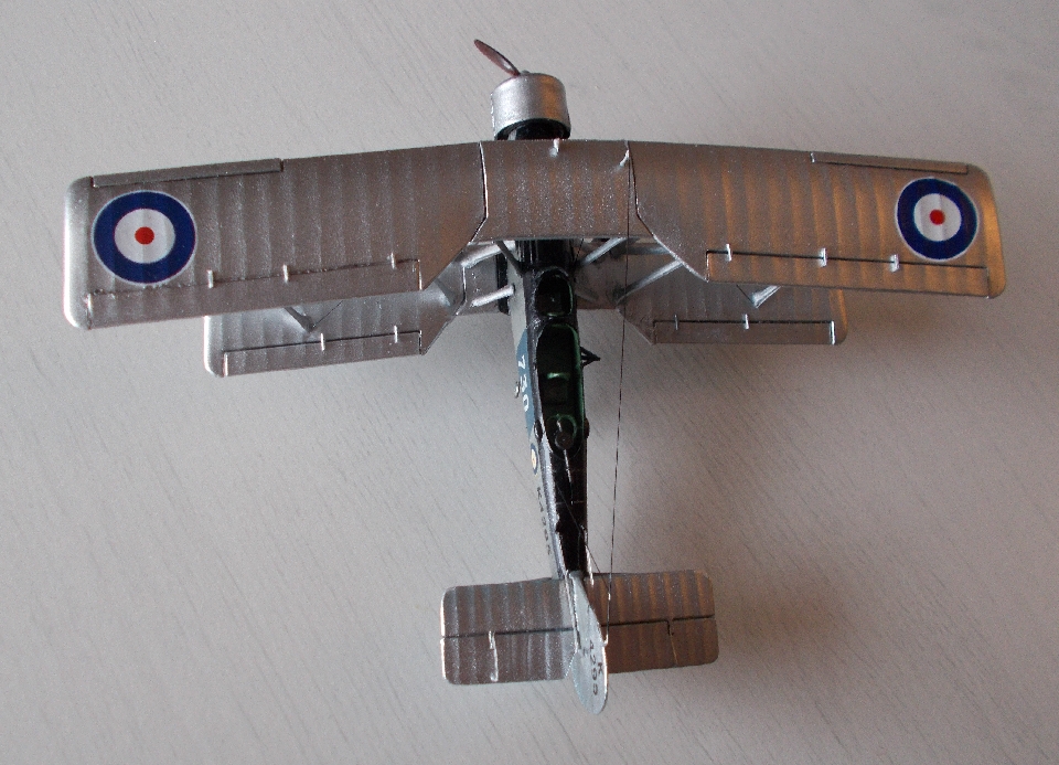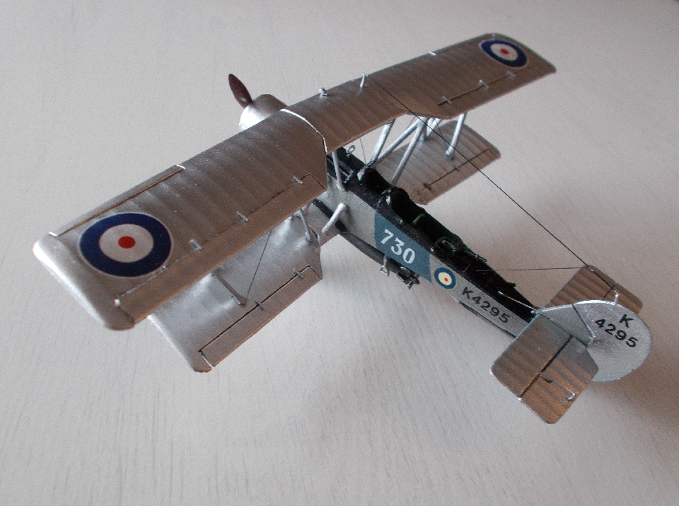 Раздел модели снимает много вопросов. По цветам... "Контрэйл" дает для предков этой машины цвет полотна- серебристый , а фюзеляж - серебристо- серый. Хотя на фото отличить эти цвета невозможно , потому большой погрешности в монотонной окраске не вижу. Серебрянку британцы использовали после первой мировой повсеместно - она лучше других защищала полотно от атмосферного воздействия.