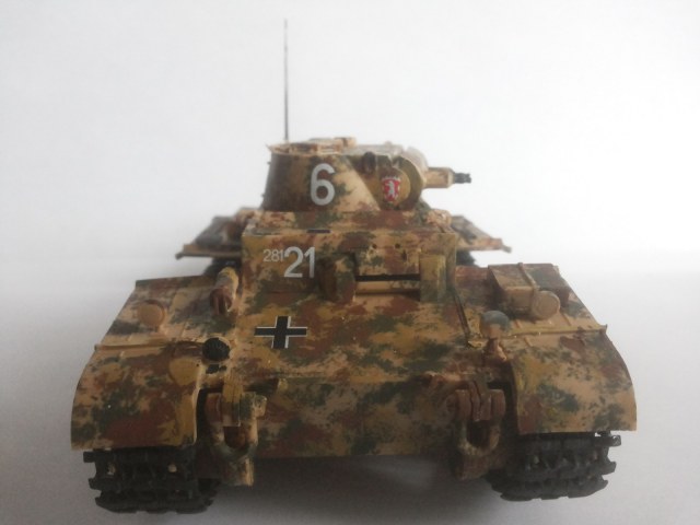 Ну тут как минимум надо содрать краску и перекрасить. Советую работать с фото прототипа. Такого камуфляжа я не припомню, выглядит очень странно. Сетки надо клеить до окраски а не после. Конвойную фару тоже.