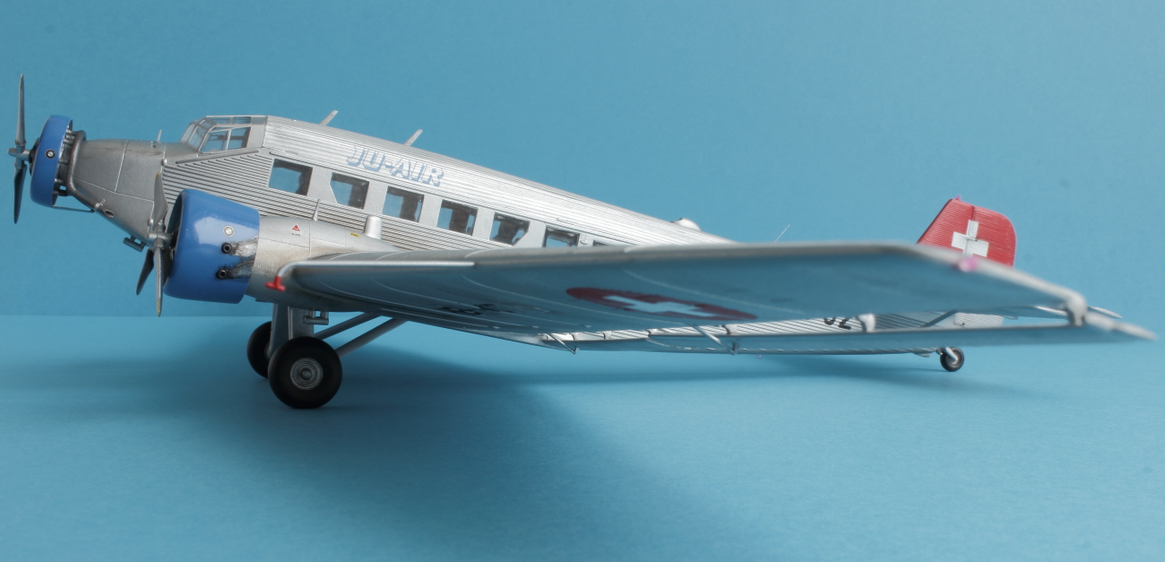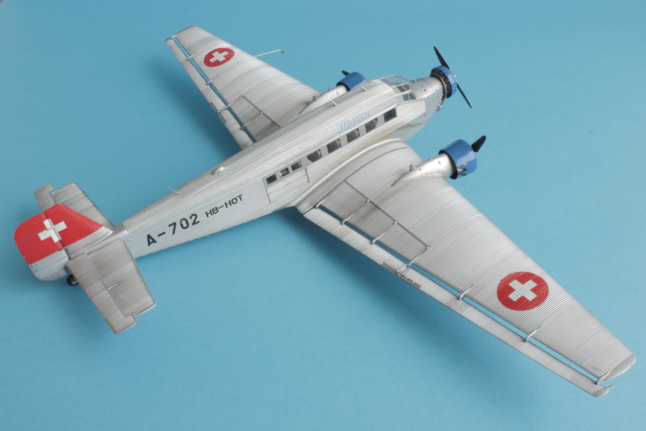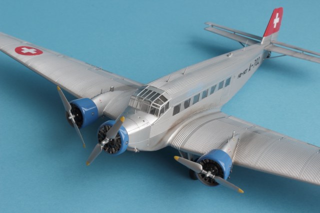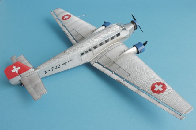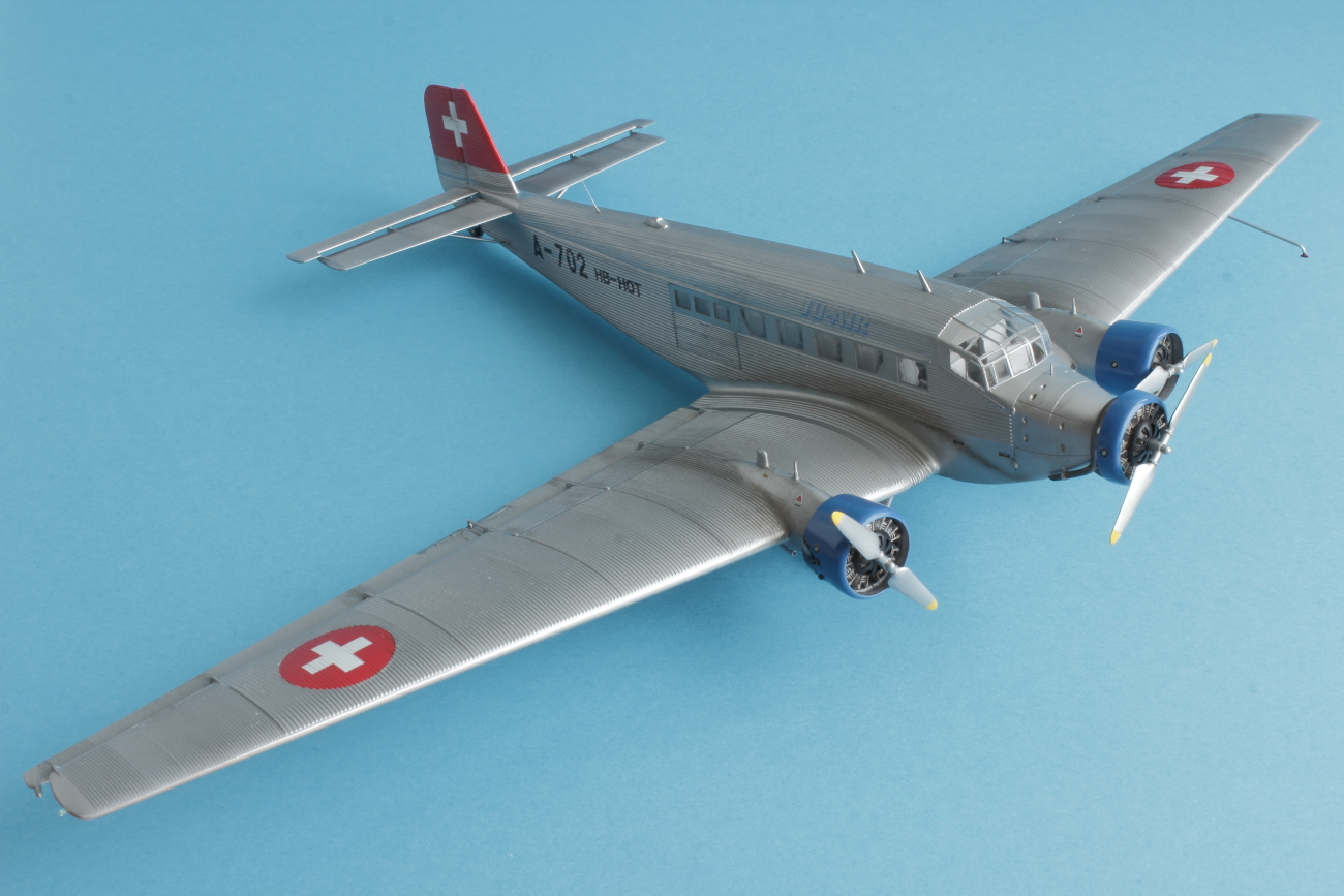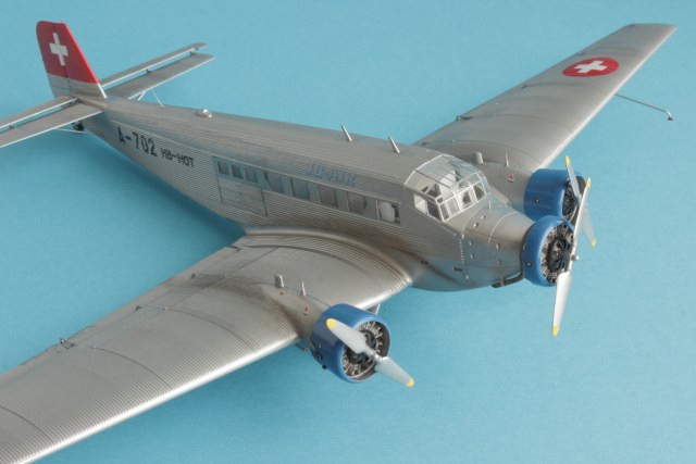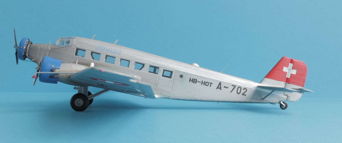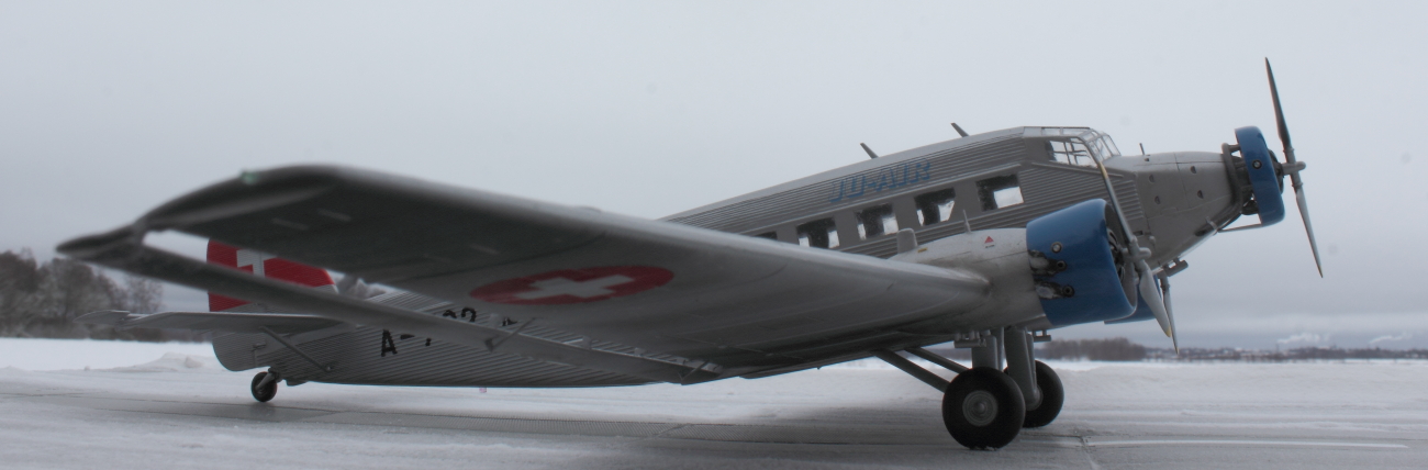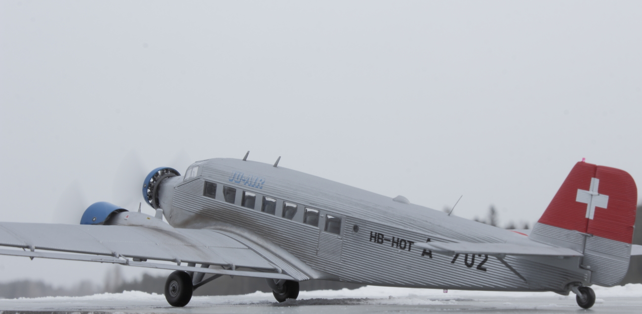 Представляю всем известный JU-52 в гражданской ливрее. Набор от италери отличного качества. Проблем со стыковкой не было, за исключением крыльев и фюзеляжа. Там пришлось сделать небольшие вставки из пластика. Самая большая проблема, с которой столкнулся при постройке это то, что краска никак не хотела приставать к пластику, особенно в местах где нет гофрированной поверхности. Хотя пластик перед покраской был вымыт и загрунтован как обычно тамией из баллонов. По этой причине пришлось строить более ранний HB-HOT без черного носа. Декали приваривались за несколько подходов, очень капризные и требуют постоянного контроля до полного высыхания. Были произведены небольшие доработки. Просверлены патрубки выхлопных труб и добавлены хомуты на носу и маяки. В общем то наверное всё. Спасибо за внимание и приятного просмотра!