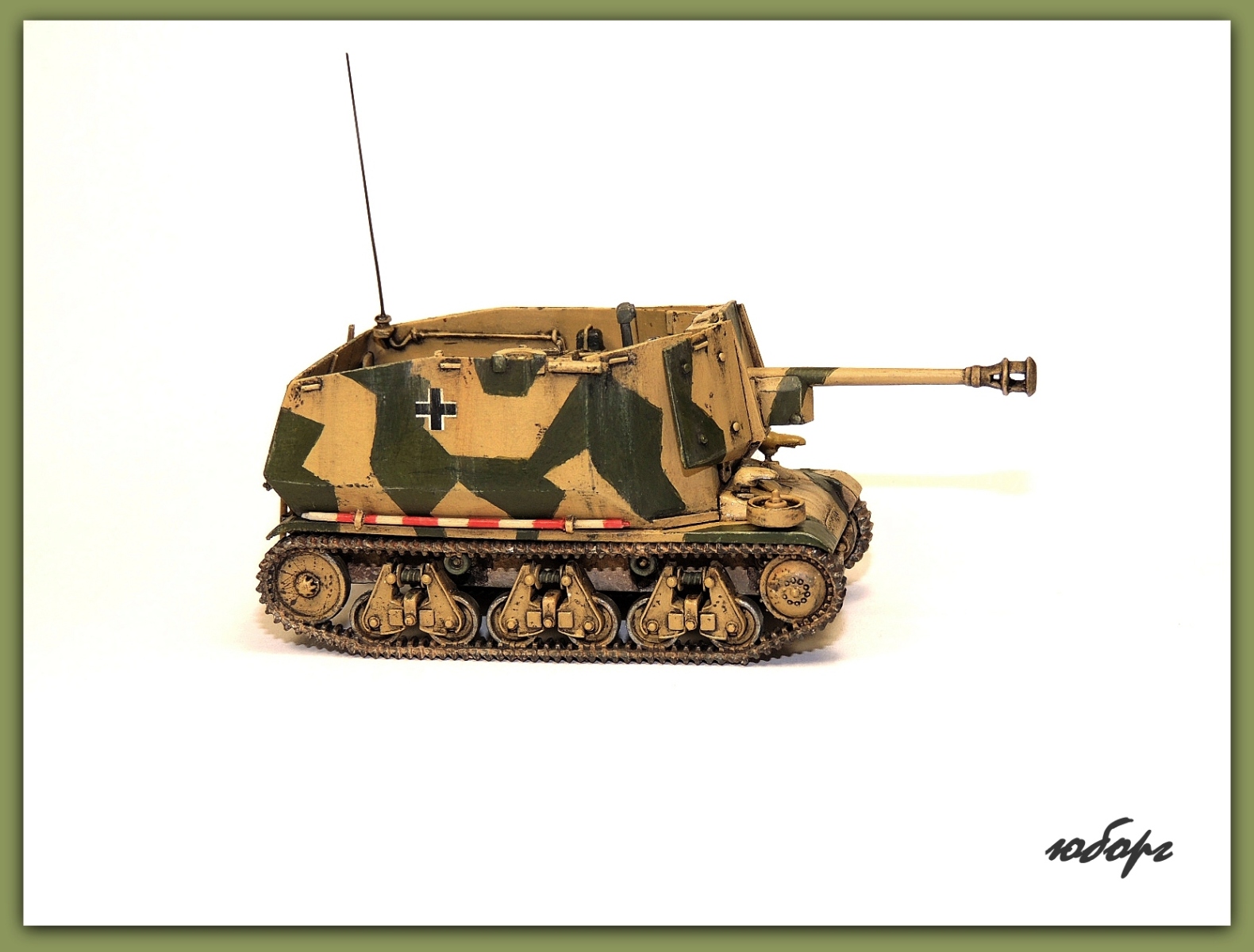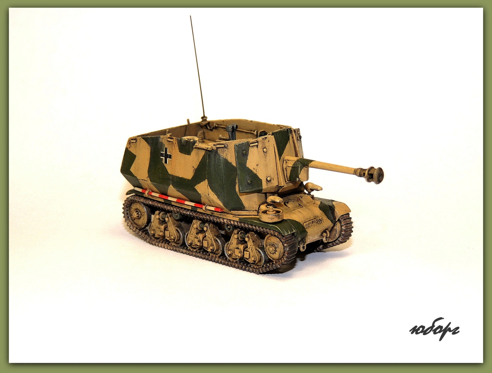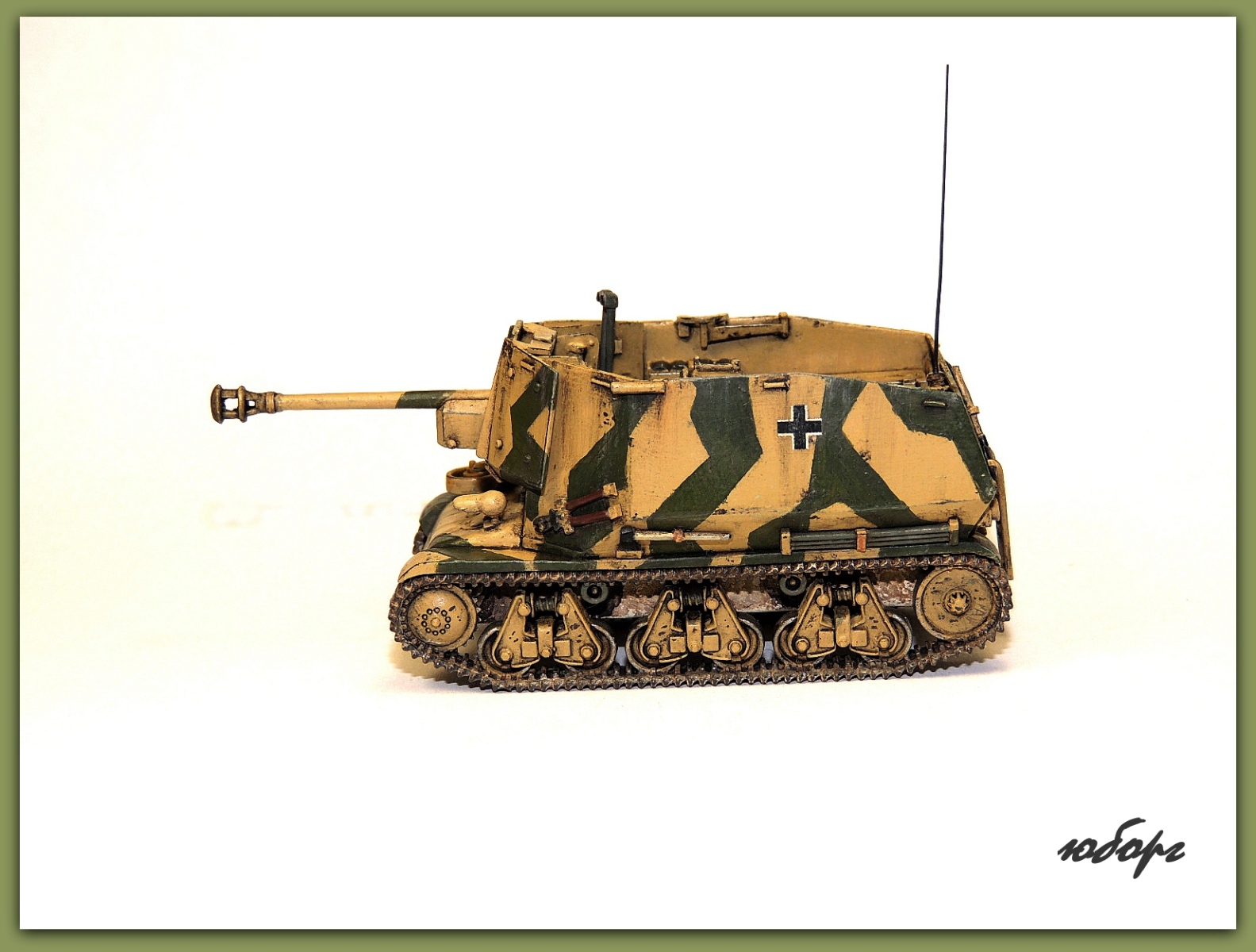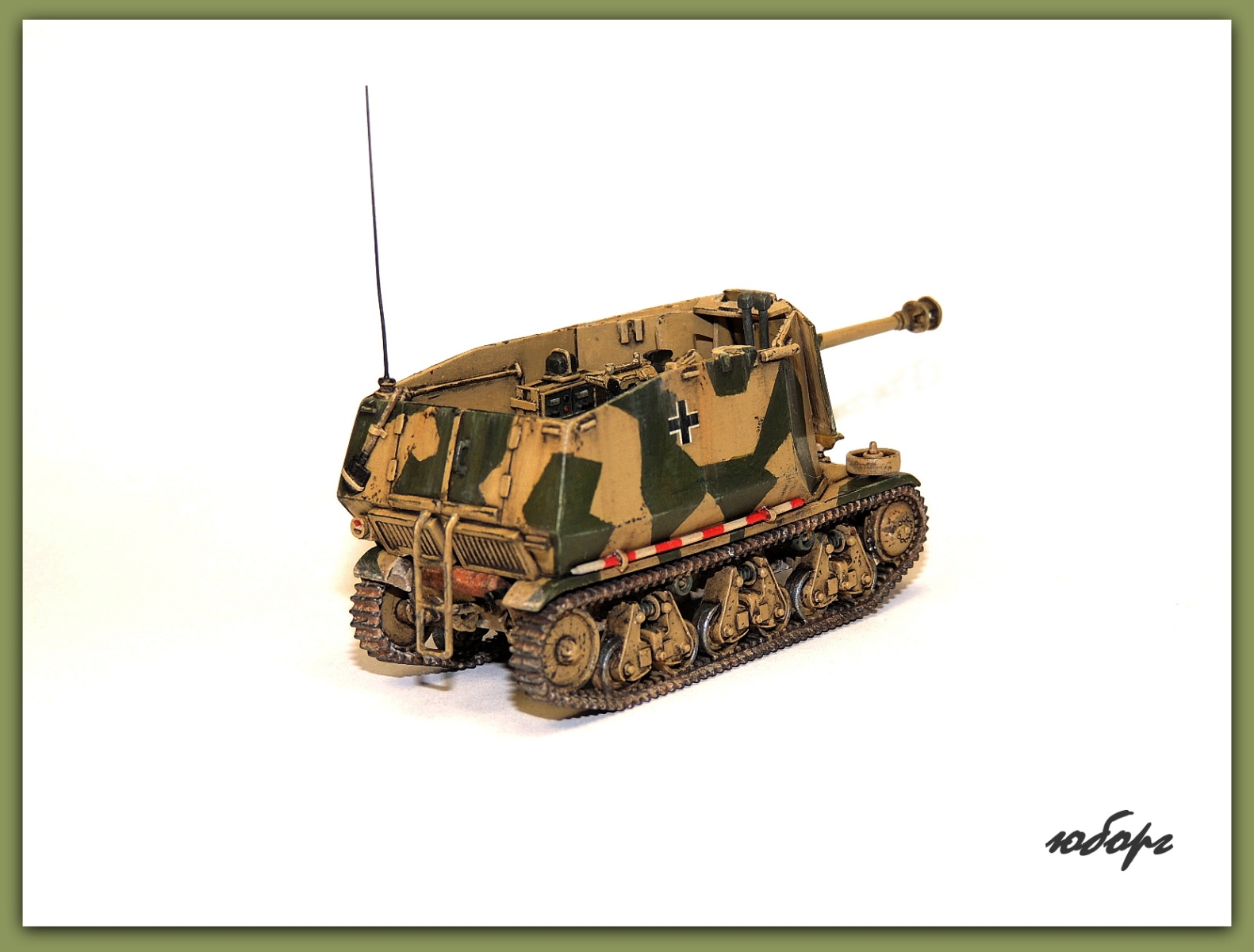 Очень люблю открытые самоходки! Но даже рассматривая модель уже собранную, забывается сколько труда вложено во всевозможную мелочевку. Одна только рация чего стОит! Да еще принять во внимание, что пилилось из нескольких моделей! Достойнейшее пополнение коллекции - Юрий, прими мои поздравления!