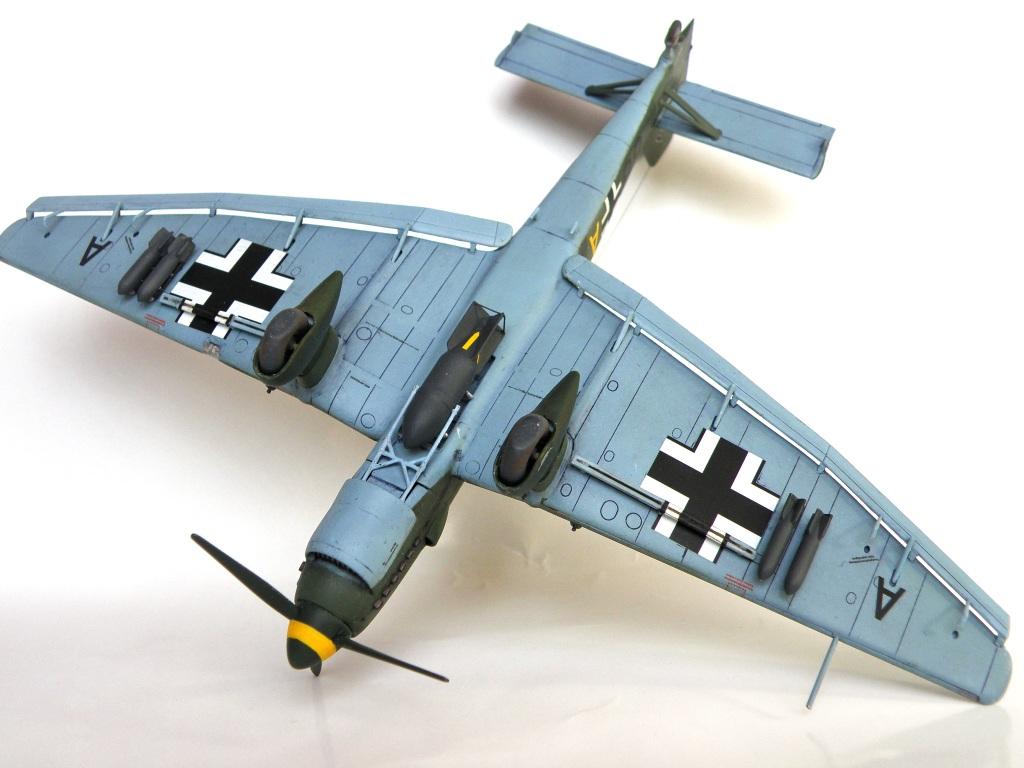 "Звезда" дает деку на 9-й штаффель Stg 2. И код "Т6+АТ", вроде бы этому соответствует. А вот эмблему они, почему-то, взяли от 9./Stg 51. В реальности эмблема должна была быть такой: