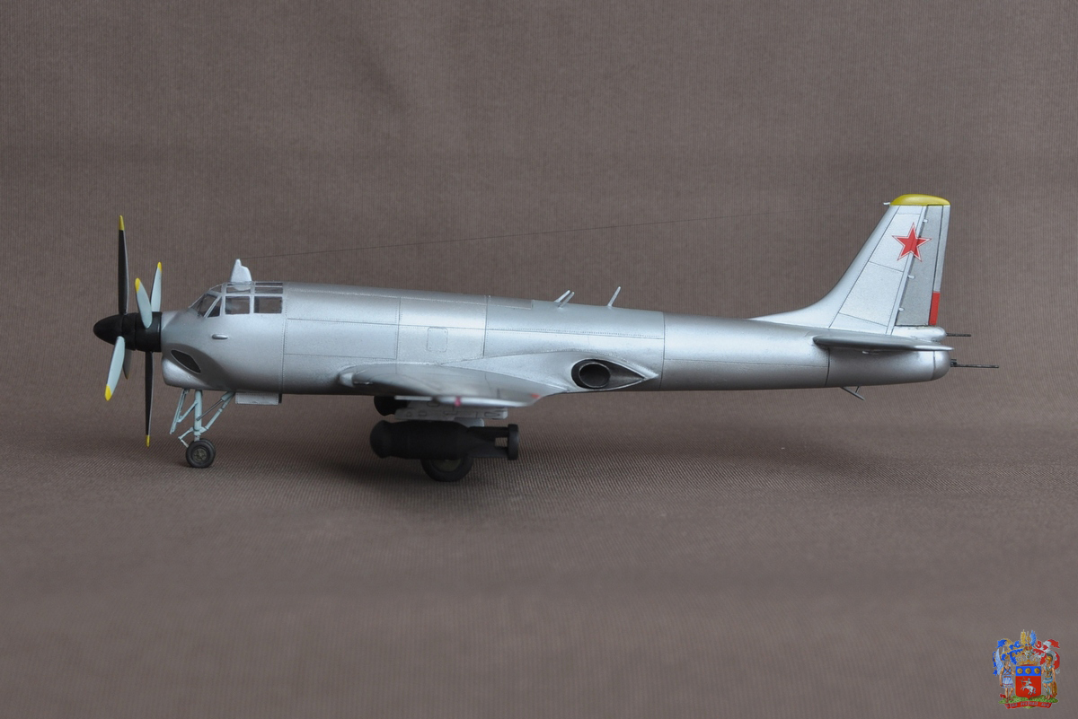 В соответствии с послевоенной программой ввода в строй авианосцев, авиационной промышленности было дано задание на изготовление «Палубного двухместного бомбардировщика-торпедоносца с ТВД». Задание получило ОКБ Туполева. Самолет был спроектирован в короткие сроки. В сентябре 1953 года заказчику был предоставлен макет самолета. Заводские испытания были завершены к весне 1955 года. Самолет полностью соответствовал ТЗ. И имел следующие ТТХ: