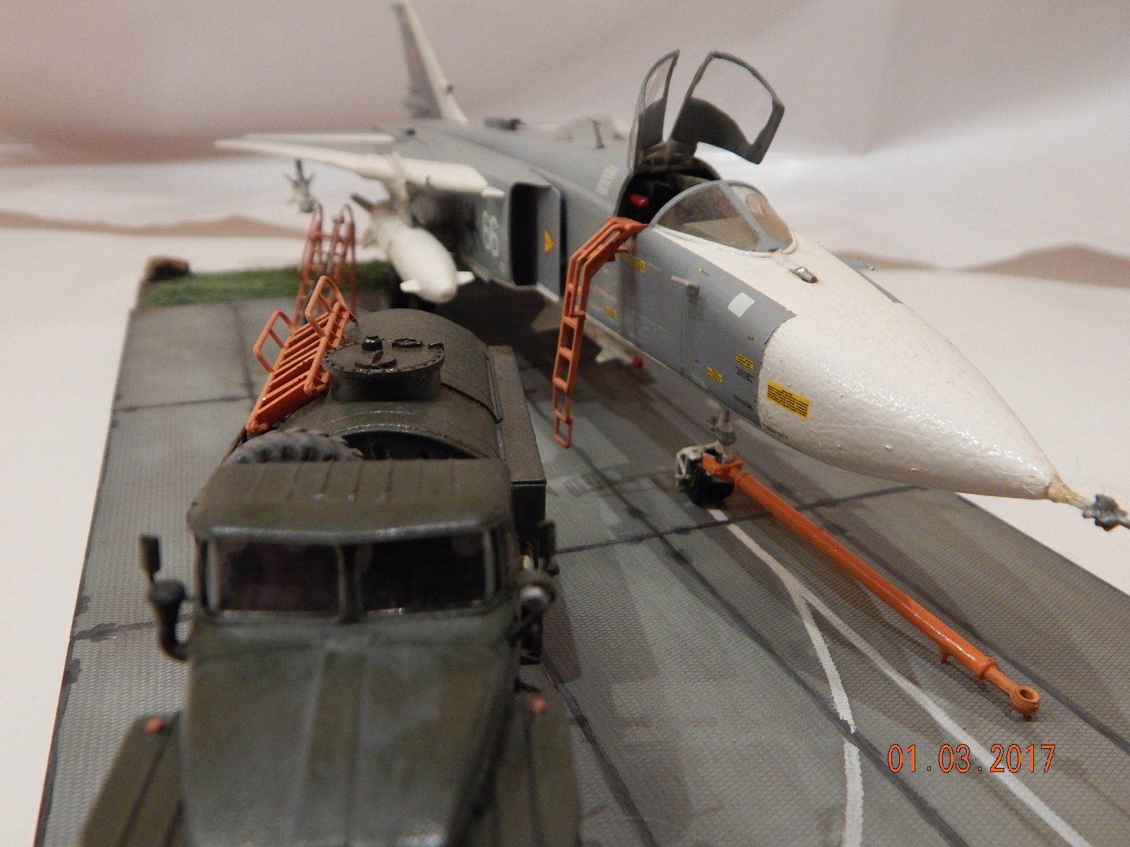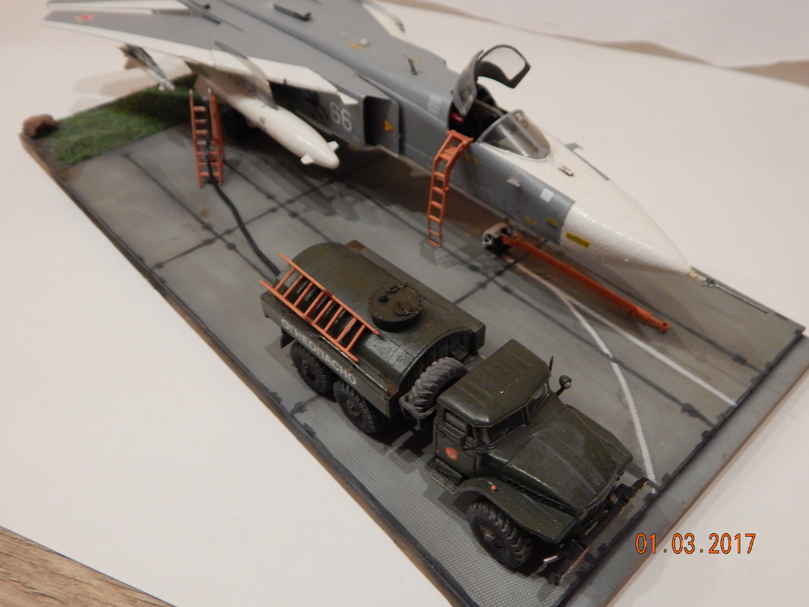 По модели Су-24М - много вопросов. А вот УРАЛ - более симпатичен. ИМХО, лучше в Песочницу. Кстати, колеса на АТЗ, установлены не правильно... Да и не было таких топливозаправщиков в авиации.