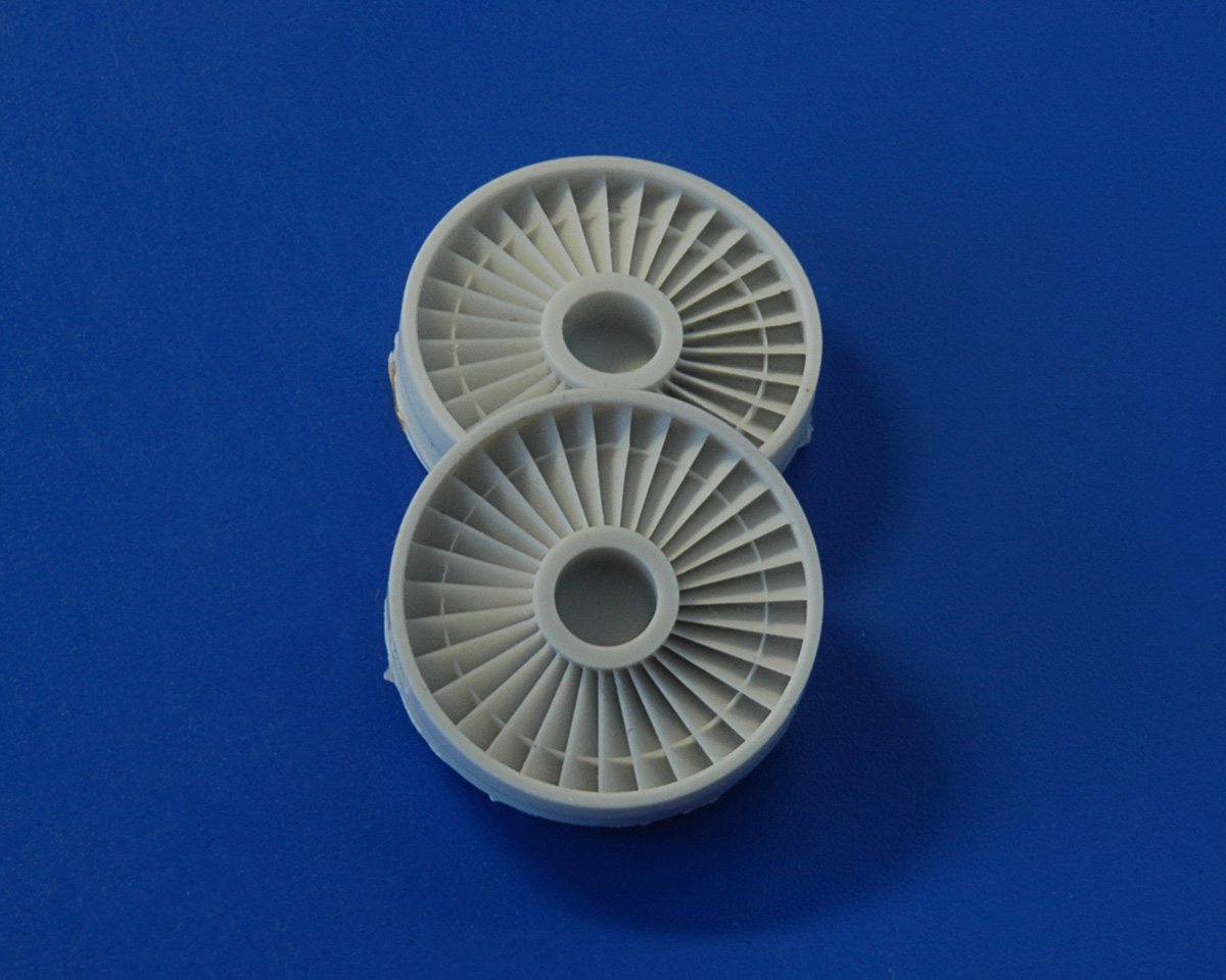 Набор состоит из тринадцати отливок полиуретановой смолы серого цвета и инструкции по сборке. Входное устройство каждого двигателя собирается из четырех частей. С деталью ВНА (RP02) следует быть предельно аккуратным. Я бы порекомендовал отделять от литника мелкой пилкой, не прилагая усилий к самим лопаткам, их легко повредить. Деталь первой ступени компрессора (RP03) можно оставить на литнике в силу его маленького размера. Все детали отлиты очень качественно, смола в обработке напоминает полистирол, в сборке все очень просто и приятно.