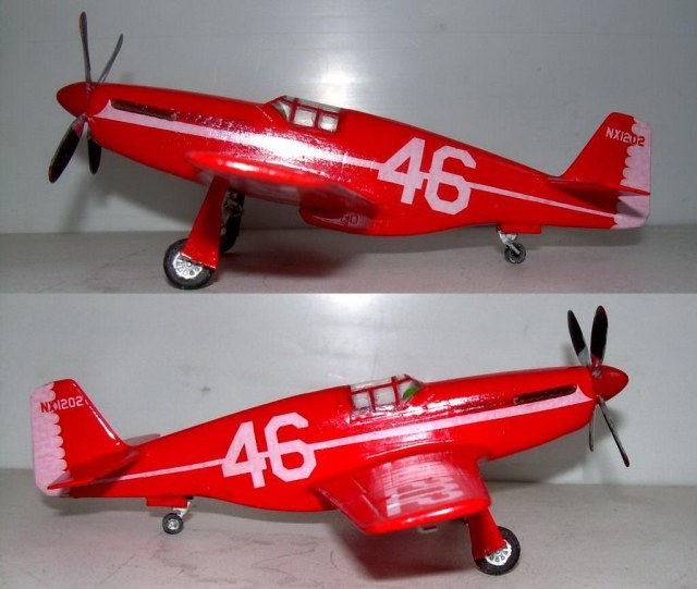 Всех приветствую. Показываю очередную поделку – гоночный P-51C-10-NT Excalibur III. Этот самолет (серийный номер 44-10947) был построен в 1944 году. В боевых действиях он не участвовал, а применялся на территории США в качестве учебного. По окончании войны самолет передали Reconstruction Finance Corporation (RFC). Впоследствии его купил Пол Мантз (Paul Mantz). Самолет получил гражданскую регистрацию NX1202. На этом самолете Пол Мантз выиграл трансконтинентальную гонку Bendix Air Race 1946 года, покрыв 2048 миль от Ван Нуис (штат Калифорния) до Кливленда (штат Огайо) со средней скоростью 435,5 мили в час. 28 февраля 1947 года Мантз установил новый рекорд перелета с востока на запад США для самолетов с поршневым двигателем, пролетев на NX1202 от Бэрбанка (штат Калифорния) до Ла Гуардия Филд (Нью-Йорк) за 6 часов 7 минут и 5 секунд. В 1947 году Мантз вновь выиграл Bendix Air Race. Вскоре после этого Мантз установил новый рекорд перелета с запада на восток США, пролетев расстояние от Ла Гуардия Филд до Бэрбанка за 7 часов и 5 секунд. В 1948 году Пол Мантз еще раз выиграл Bendix Air Race, но на этот раз на NX1204 - другом P-51C, купленном также у RFC. А NX1202 в 1950 году сменил хозяина – им стал Чарльз Блэр (Charles F. Blair), который планировал установить на нем новый рекорд скорости при кругосветном перелете. Новый владелец вначале назвал самолет Stormy Petrel (Буревестник), но вскоре изменил название на Excalibur III. 31 января 1951 года Блэр совершил перелет из международного аэропорта в Нью-Йорке в Лондон за 7 часов и 48 минут. Благодаря сильному попутному ветру средняя скорость составила 450 миль в час. Старый рекорд был перекрыт на 1 час и 7 минут. Этот рекорд для самолета с поршневым двигателем не побит до сих пор. Следующей весной Блэр совершил перелет из Лондона через Бремен, Осло, и Бардуфосс (Норвегия) и затем через Северный Полюс до Фербенкса (штат Аляска), прибыв туда 29 мая 1951 года. После этих полетов Excalibur III был передан Смитсонианскому институту, где и находится по сей день.