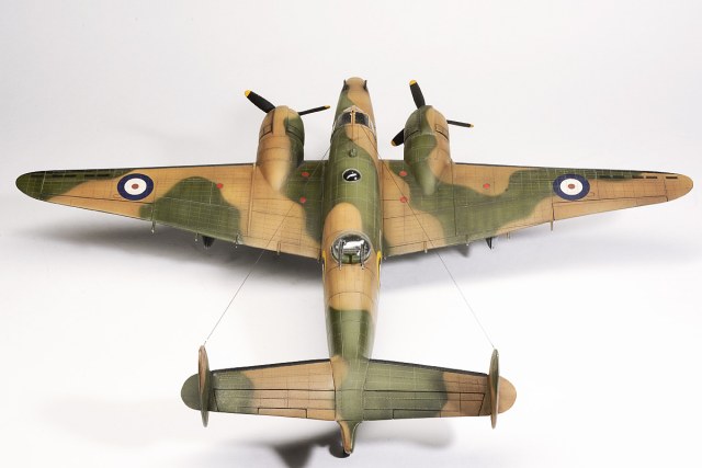 Честно говоря, совсем не хотелось делать ее синей, и я уцепился за единственный боковик с палитры крыла, где Вентура без остекленного носа несла коричнево/зеленый камуфляж и британские ОЗ. Правда, подтверждающих фотографий я так и не нашел, но успокоил себя тем, что делаю исключительно в память о игрушке из своего детства : )