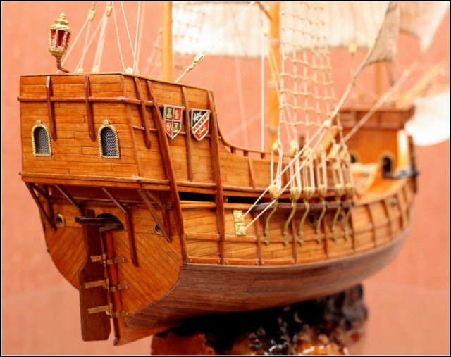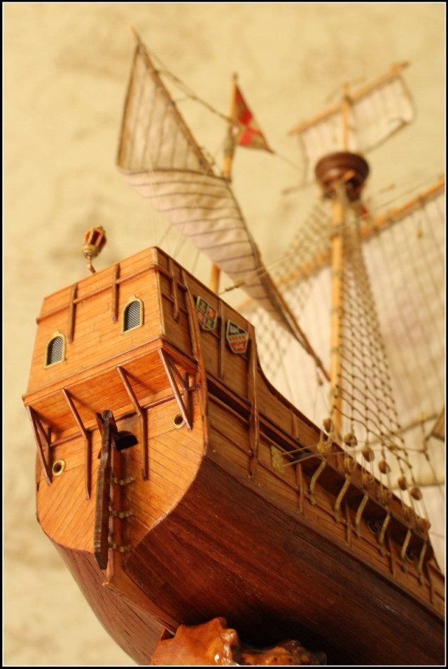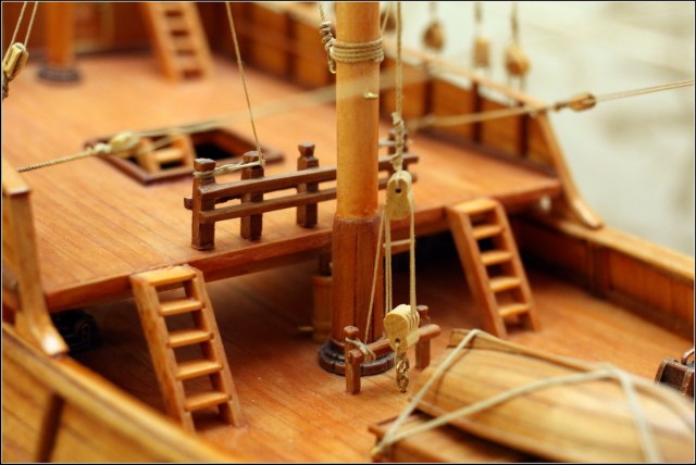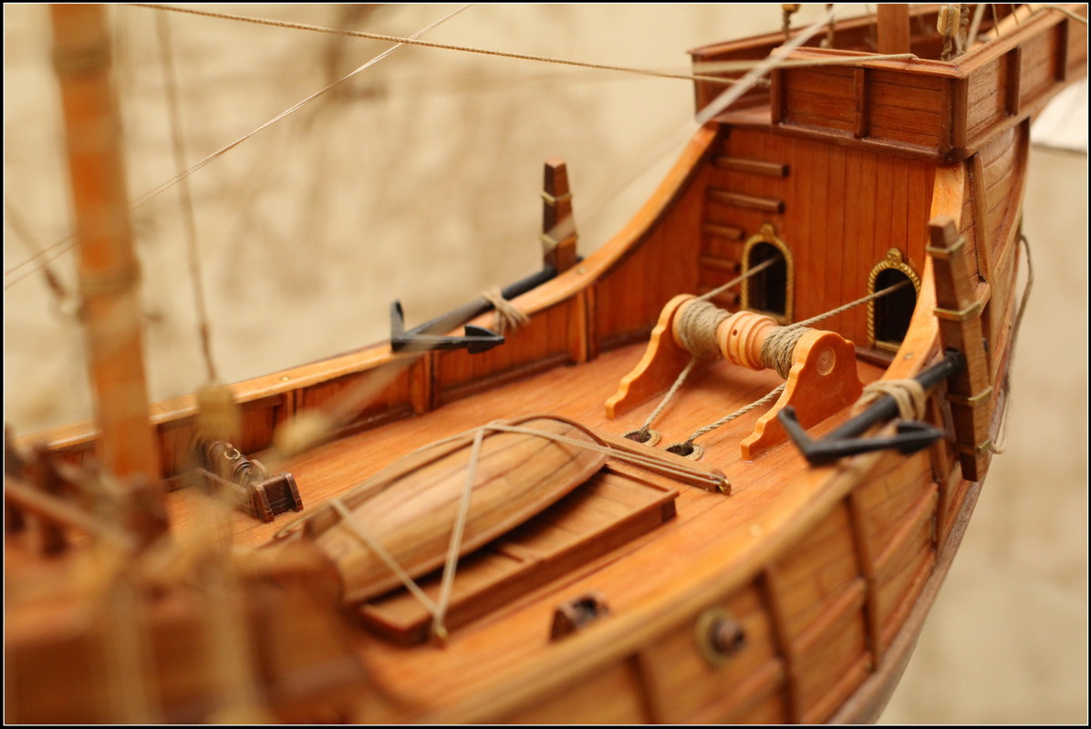 Для первой модели очень хорошо... Якорный канат на брашпиле одновременно вытягивает якорь и вытаскивается из трюма(якорного ящика), и доски на транце надо было делать цельными... А вообще за галерею...Думаю ошибки учтутся на следующей модели...