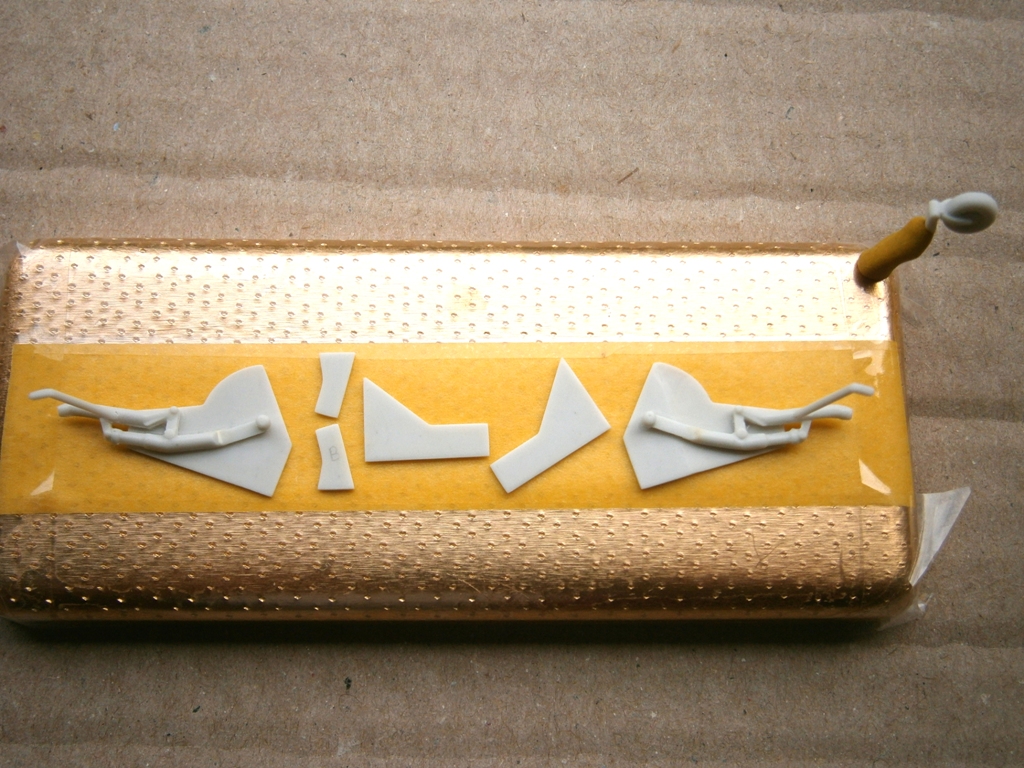 Так получилось, что у хорошего приятеля тоже остался набор НОВОвского Си Фьюри. Так, как эта моделька приятелю совершенно без надобности, то он с нею без сожаления расстался в мою пользу. В общем, образовалось у меня два набора, с разным качеством литья. Взял от каждого лучшее. К примеру, от набора товарища использовал заднюю стойку шасси, бронеспинку, вспомогательные створки шасси (те, что по центру), которые на удивление великолепно отлились, основные стойки шасси и одно колесо, чтобы у готовой модели колёса были одинаковыми.