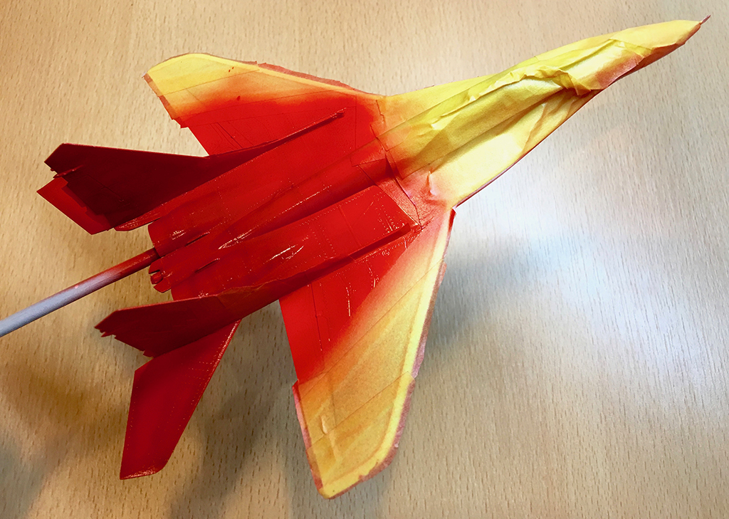 Попытался обозначить цвета побежалости на соплах пудреницей Tamiya.