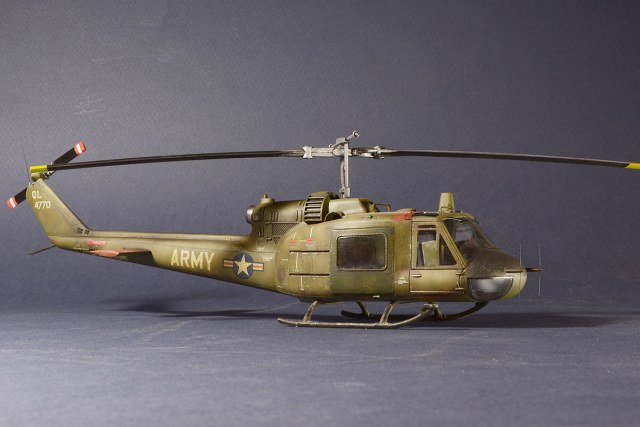 Есть некоторая путаница с модификациями, но обстоятельства сложились так, что пришлось клеить светлую "ARMY" на модификацию С, даже не клеить, а собирать из MARINES, и потом "припылять", как описано в журнале, но и вообще, я не очень понимаю, что за машину имел в виду ХоббиБосс. Так что, модель эта — исключительно разминка перед более серьезными Ирокезами, которые ждут своего часа.
