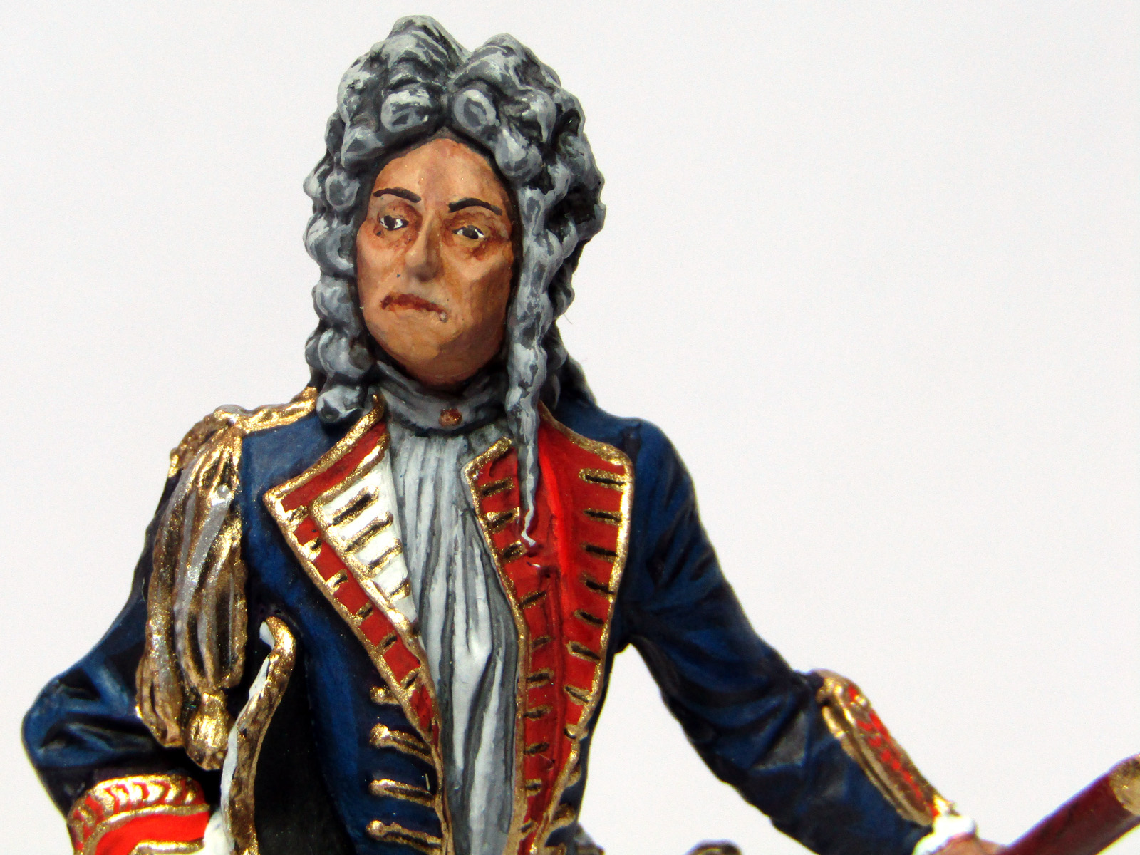 Красив адмирал. Но мне кажется золотое шитье слишком блестит, слишком стальной цвет. Может матовым лаком приглушить. Сколько видел золотого шитья в музеях такого ослепляющего блеска не видел, нет его и на новом шитье.