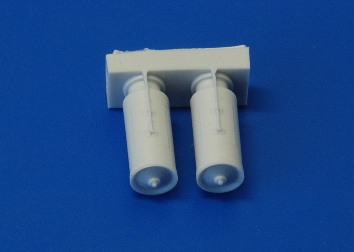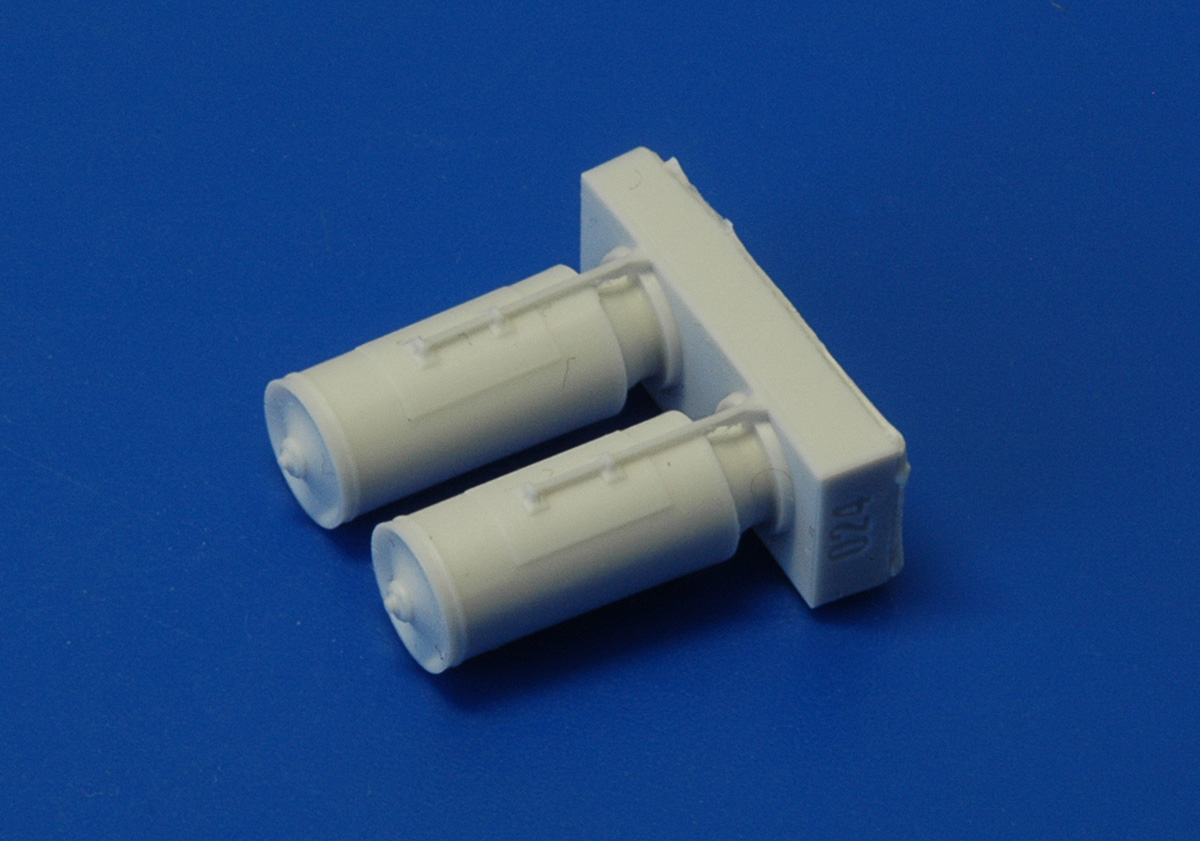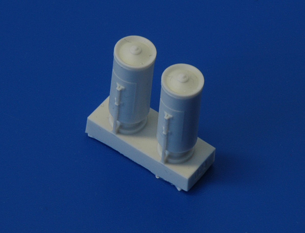 В комплекте даются две отливки отлитые из светло-серой полиуретановой смолы и декаль. Что позволяет собрать две бомбовые кассеты.