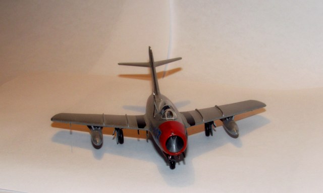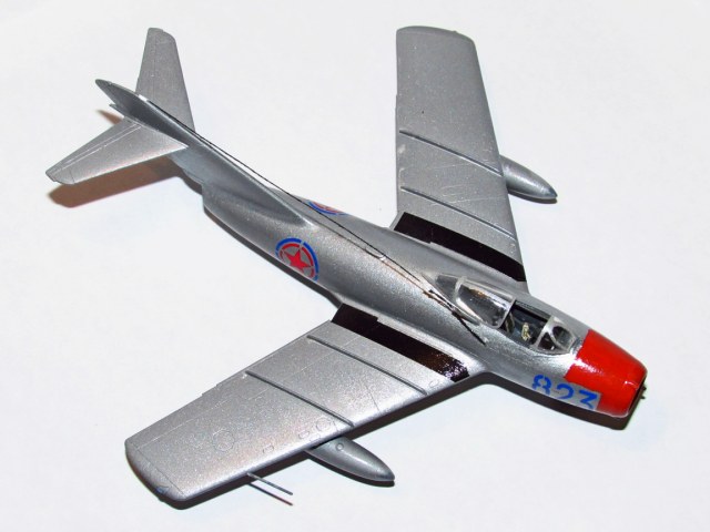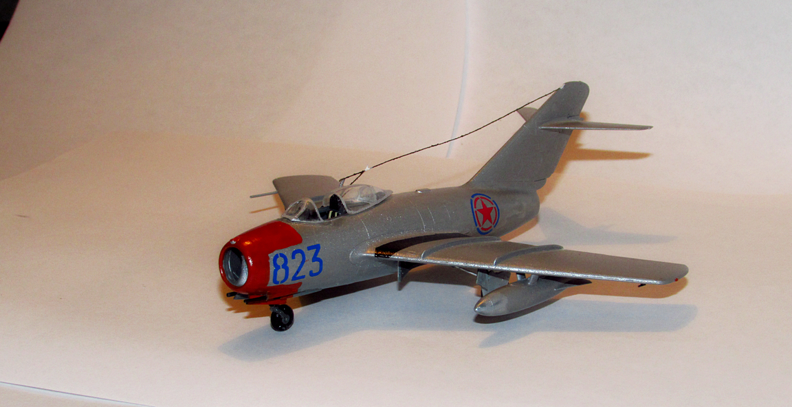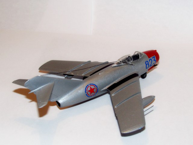 Представляю на суд сообщества свое второе по счету "творение" - модель истребителя МиГ-15 Северокорейских ВВС времен Корейской войны. Собран полностью "из коробки", разве что предпринята попытка сымитировать антенну. Швейной нитью. Не совсем удачная. :) За матчастью не гнался, ибо не дорос еще.