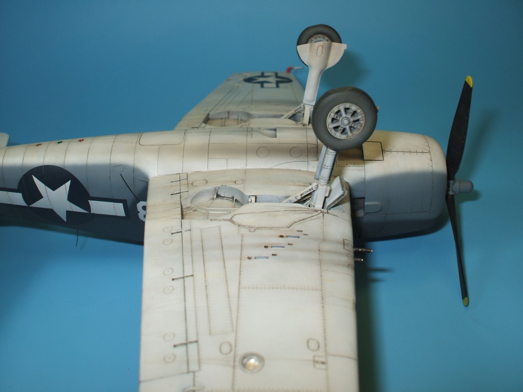По покраске. Как бы ничего нового, но заказчик хотел чтоб самолет выглядел изрядно «повоевавший», на что в дальнейшем и делался акцент. Красилась модель акриловыми красками от HobbyColorи Tamiya, использовалась футура, лак для волос, художественные масляные краски, смывка MIG. Есть не большая претензия к производителю по поводу декали. Нет, качество декали отменное, она прекрасно реагирует на соответствующую химию, вот только синий цвет на опознавательных знаках полная лажа, это что угодно, но не как не DullBlue ( Insignia ) FS: 35044, по этому ОЗ в четырех позициях были заменены на прекрасно всему соответствующие декали из закромов.