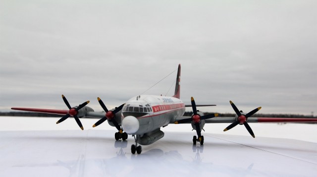 Как я понимаю,то самолёт был создан для длительных полётов в Заполярье,это и окраска и дополнительный топливный бак снизу(если не ошибаюсь).Модель смотрится хорошо,соответствует прототипу.