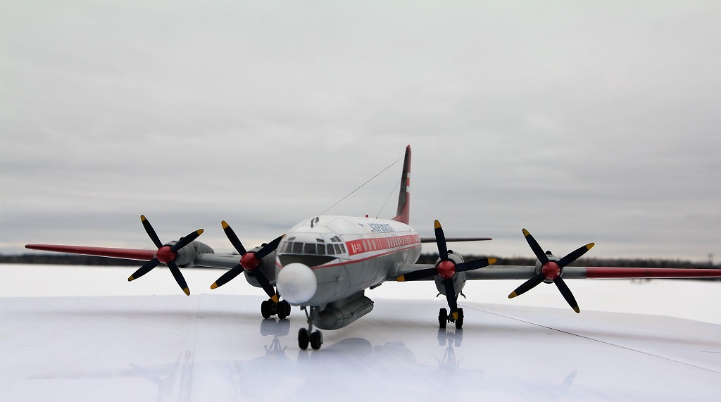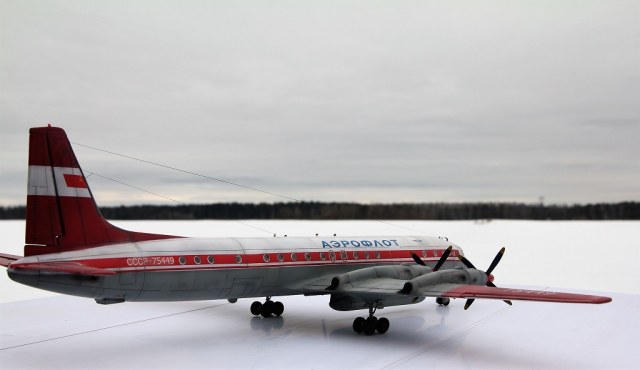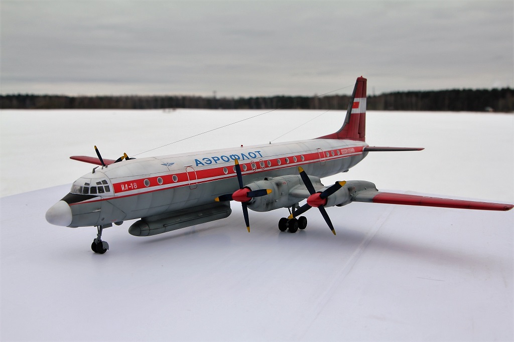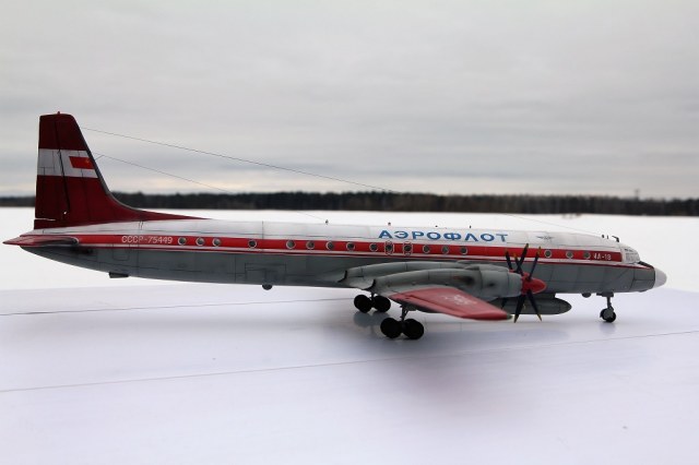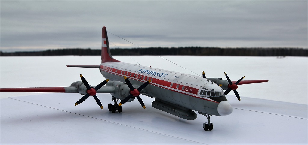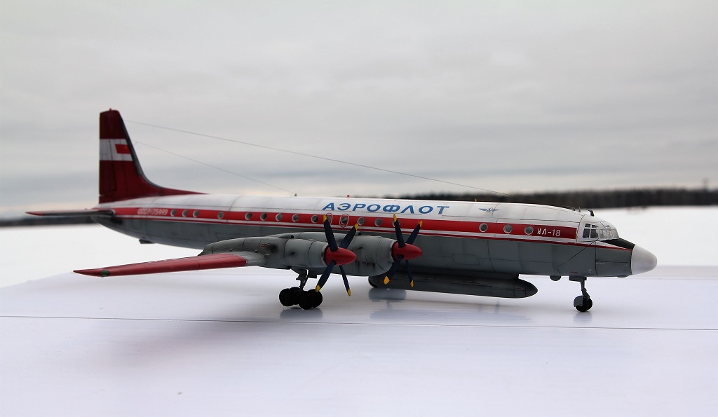 Красив аппарат! Основа Ил 18 -флагман большой Советской винтовой авиации. А ливрея загляденье. За победу над А-монстром, производителю надо талоны на молоко выдавать моделистам, и на пенсию по первой ,,сетке,, отправлять.