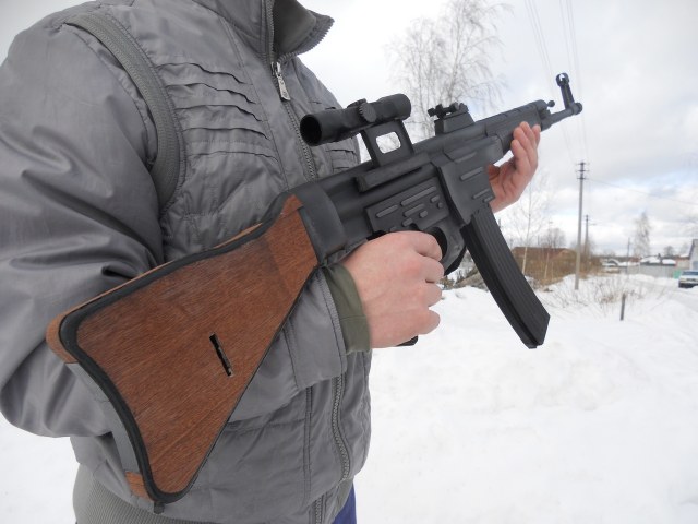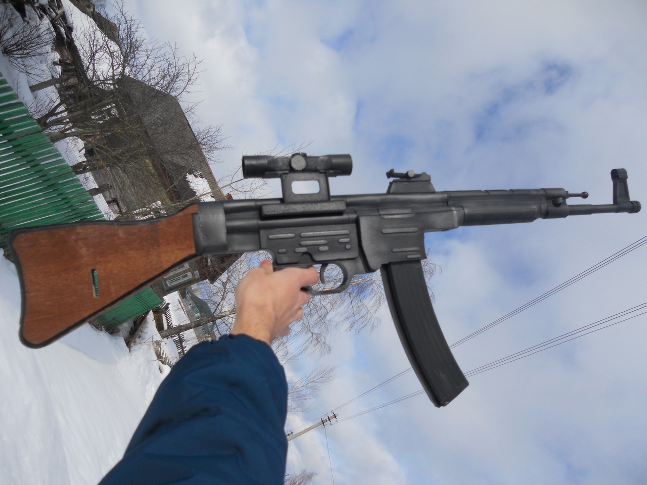 Попробовал собрать бумажную модель немецкого автомата 1943 года - StG 44 , собирал по чертежам По покраске - опыта нет вообще , красил баллончиком матовой черной краской , потом втирал карандашную пыль для имитации потертостей