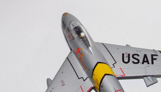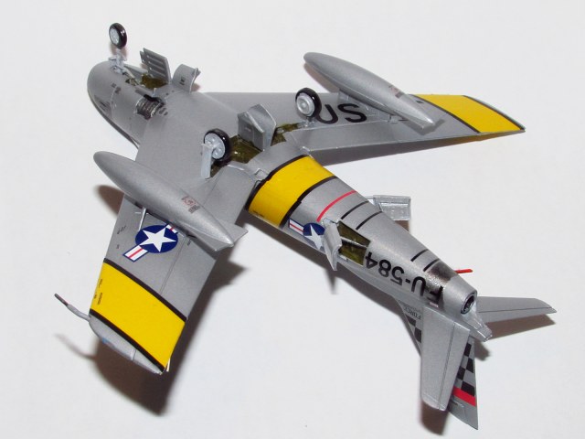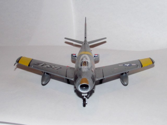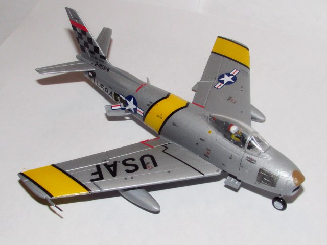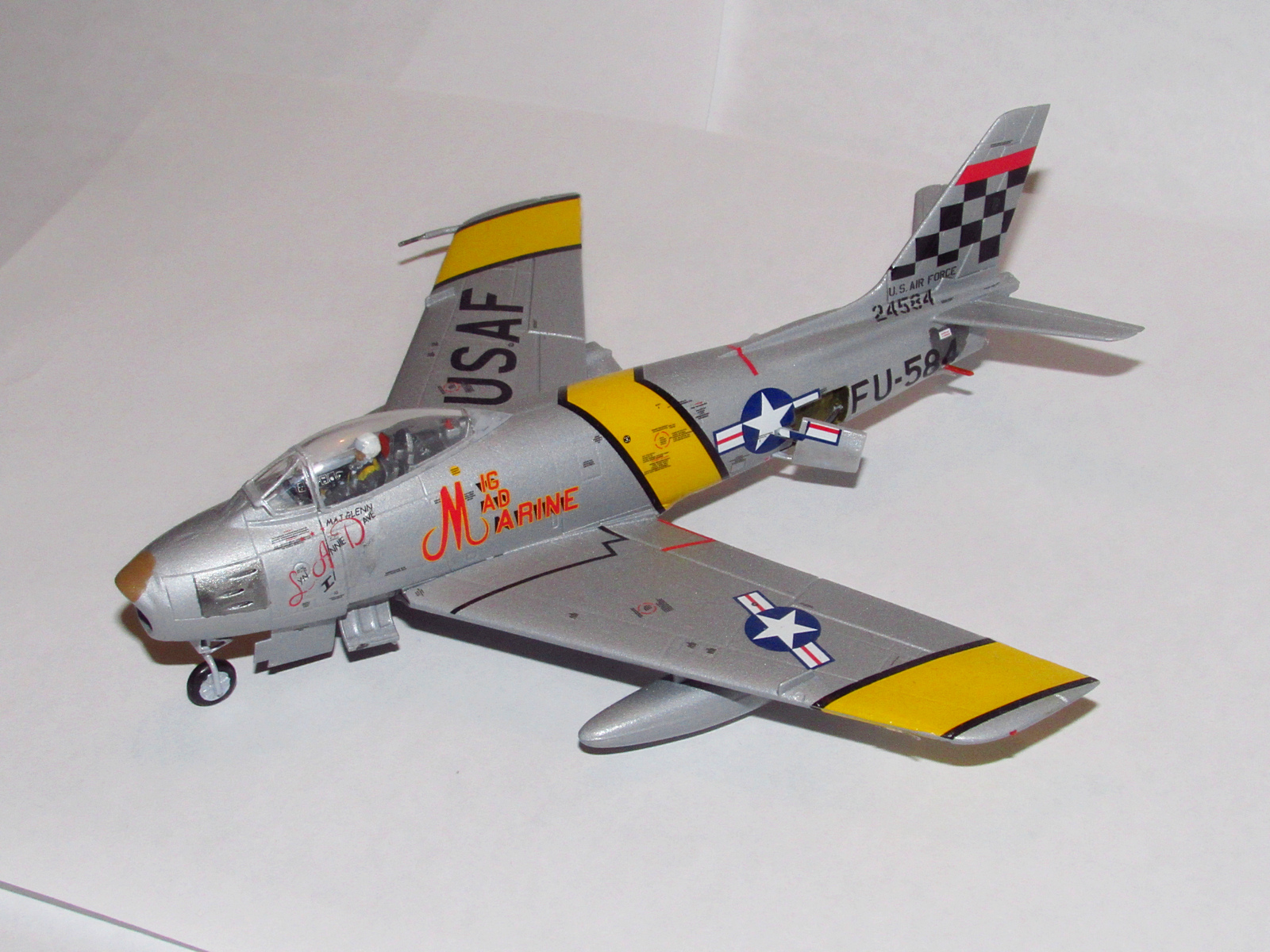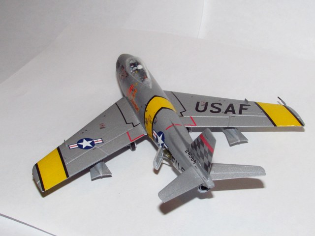 Перед Вами, товарищи, модель истребителя американских ВВС F-86F Sabre, который, если верить инструкции, пилотировал в далеком 53-м году в Корее майор Джон Гленн.,