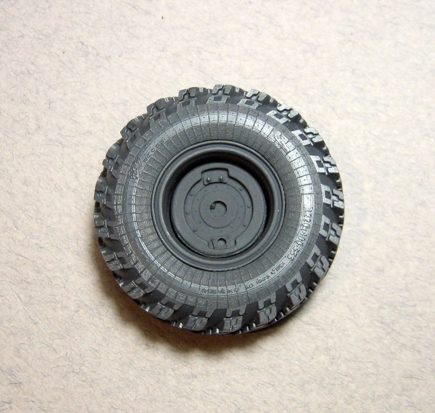 Итак, колёса весьма "вкусные": красивые, близкие к реальным размерам, хорошо проработанные. Ступица выступает как положено, не плоская, как у ICM, очень хорошо сделана защита системы давления в шинах - ажурно и подробно. У ICM и MINIARMа, этот узел сильно упрощен.
