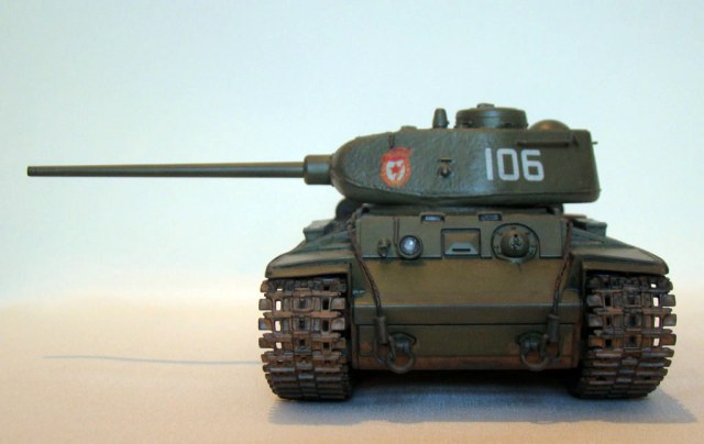 Ого! Грозная машина получилась! И правда, корпус КВ с башней от Т-34 - это бронирование корпуса как у могучего КВ и огневая мощь 85-мм пушки!