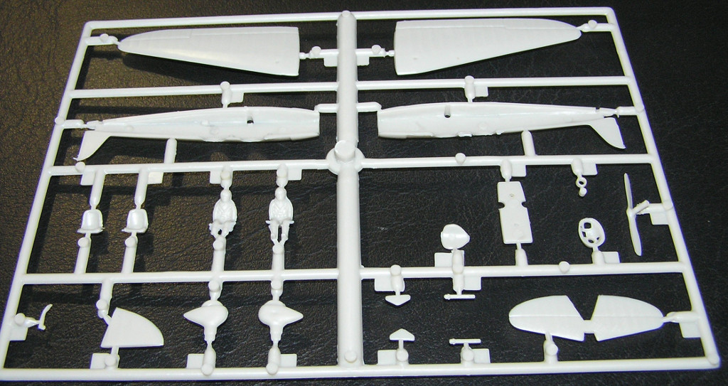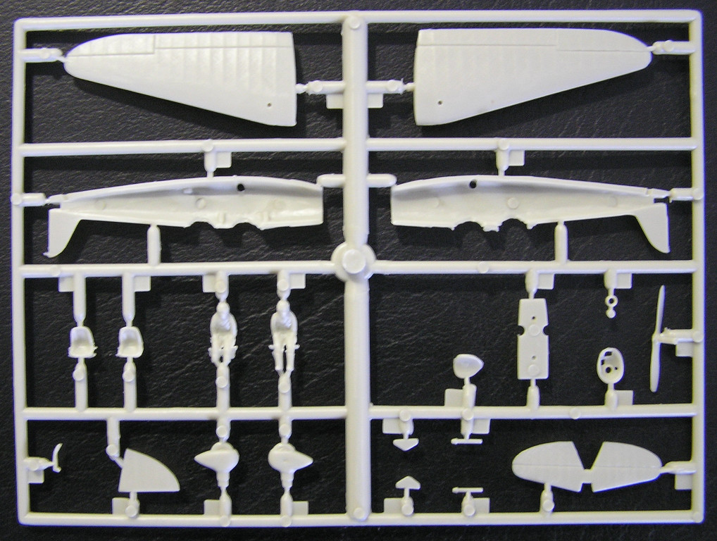 О модели: Реинкарнация древней модели от HUMA-Modell включает в себя 24 детали: один литник белого пластика с 22 деталями и 2 детали прозрачного пластика. Имеет внутреннюю расшивку, простенькую имитацию провиса полотна. Литье под низким давлением. Пластик мягкий, легко обрабатывается (напоминает пластик AModel). Присутствует облой, следы толкателей на внутренних поверхностях. Недоливов не заметил, а вот утяжины имеются (хорошо видны на стойках шасси). Кабины пустые, требуют доработки, но это для любителей сусликов. Переднее шасси - “лапти”. Задняя стойка - “костыль”. Прозрачный пластик толстоват, как вариант - замена на пленку. Стыковка деталей на очень пристойном уровне.