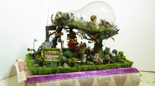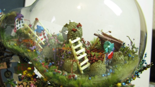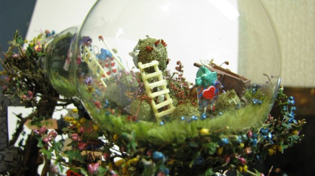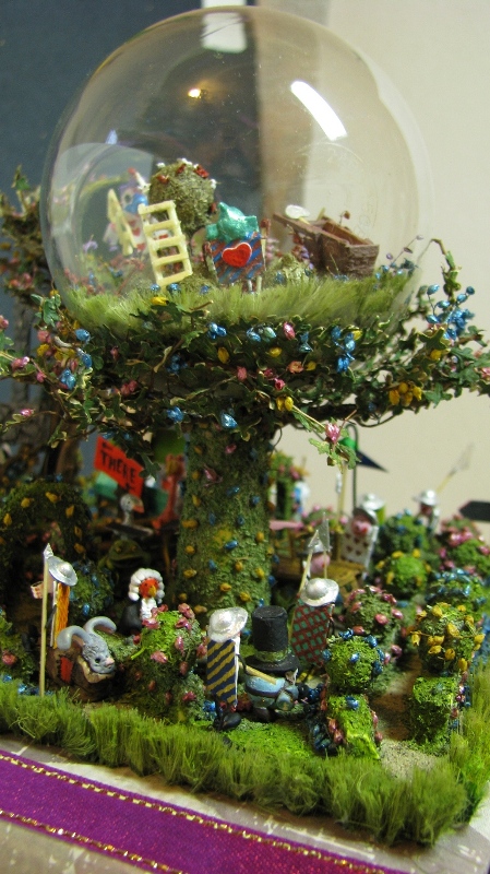 На такое небольшое основание- такое количество всего, по моему перебор. Да ещё и табличка с авторской подписью половину работы закрывает.