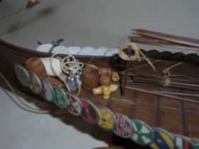 Щиты покрашены не по инструкции, с внутрений стороны покрашены в белый цвет, что означало, что воины на корабле готовы к сражению.