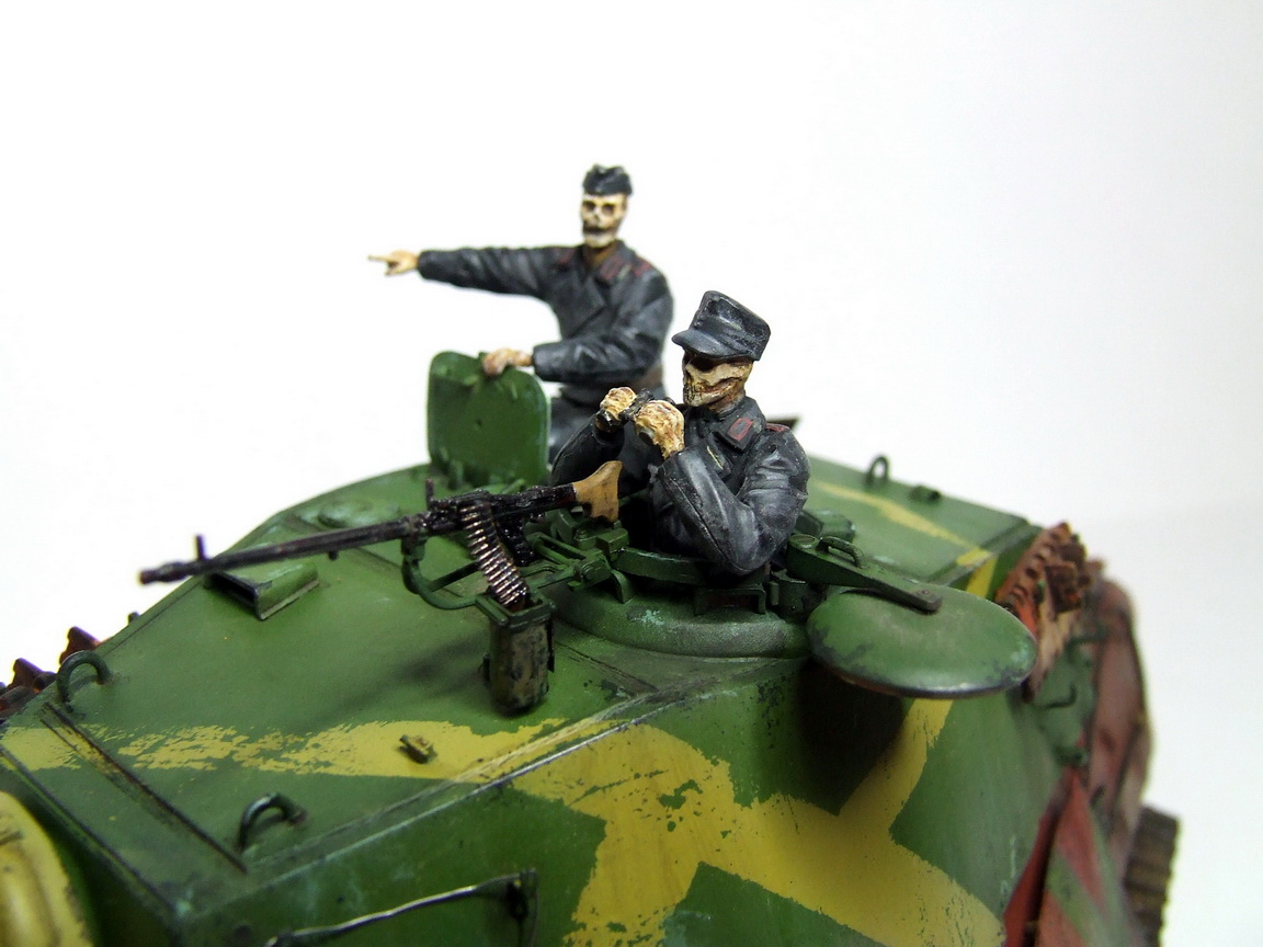 Из доработок : "крылья", листы доп.бронирования, крепления для доп.траков, сетка, цепи, трос, головы фигурок сделал из тех, что в наборе.