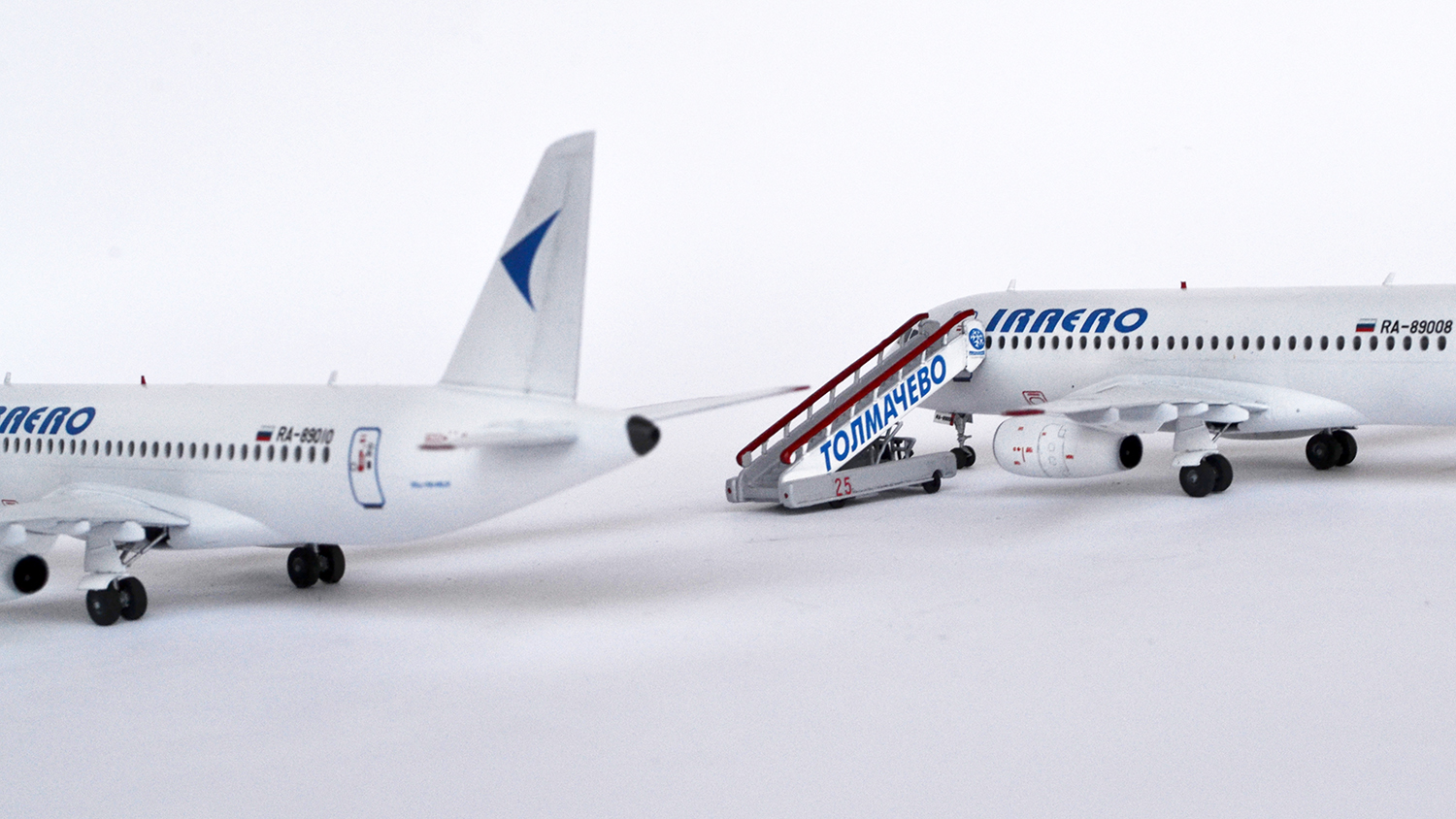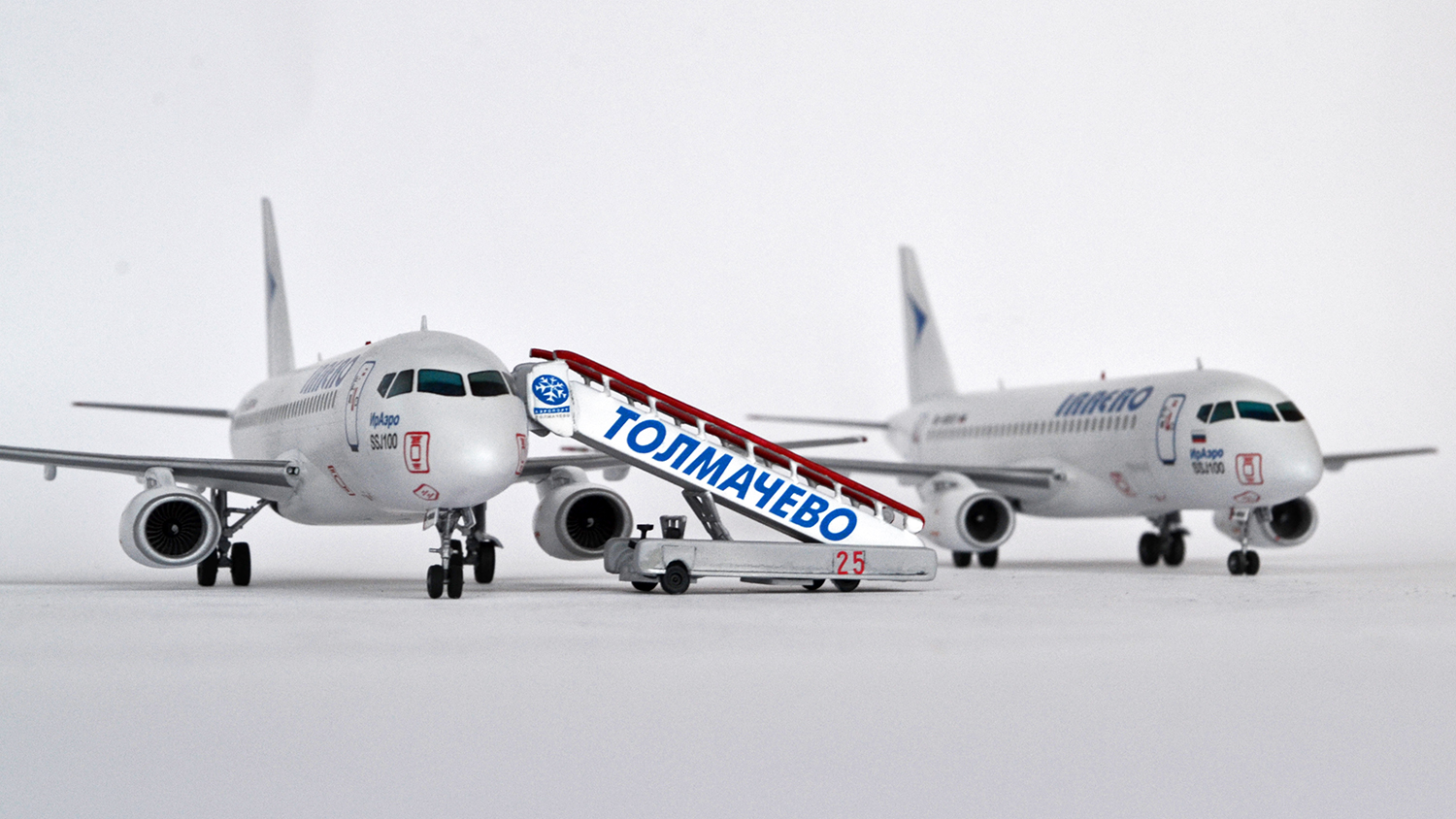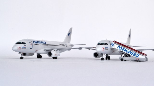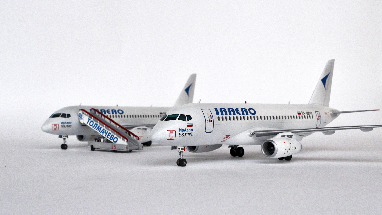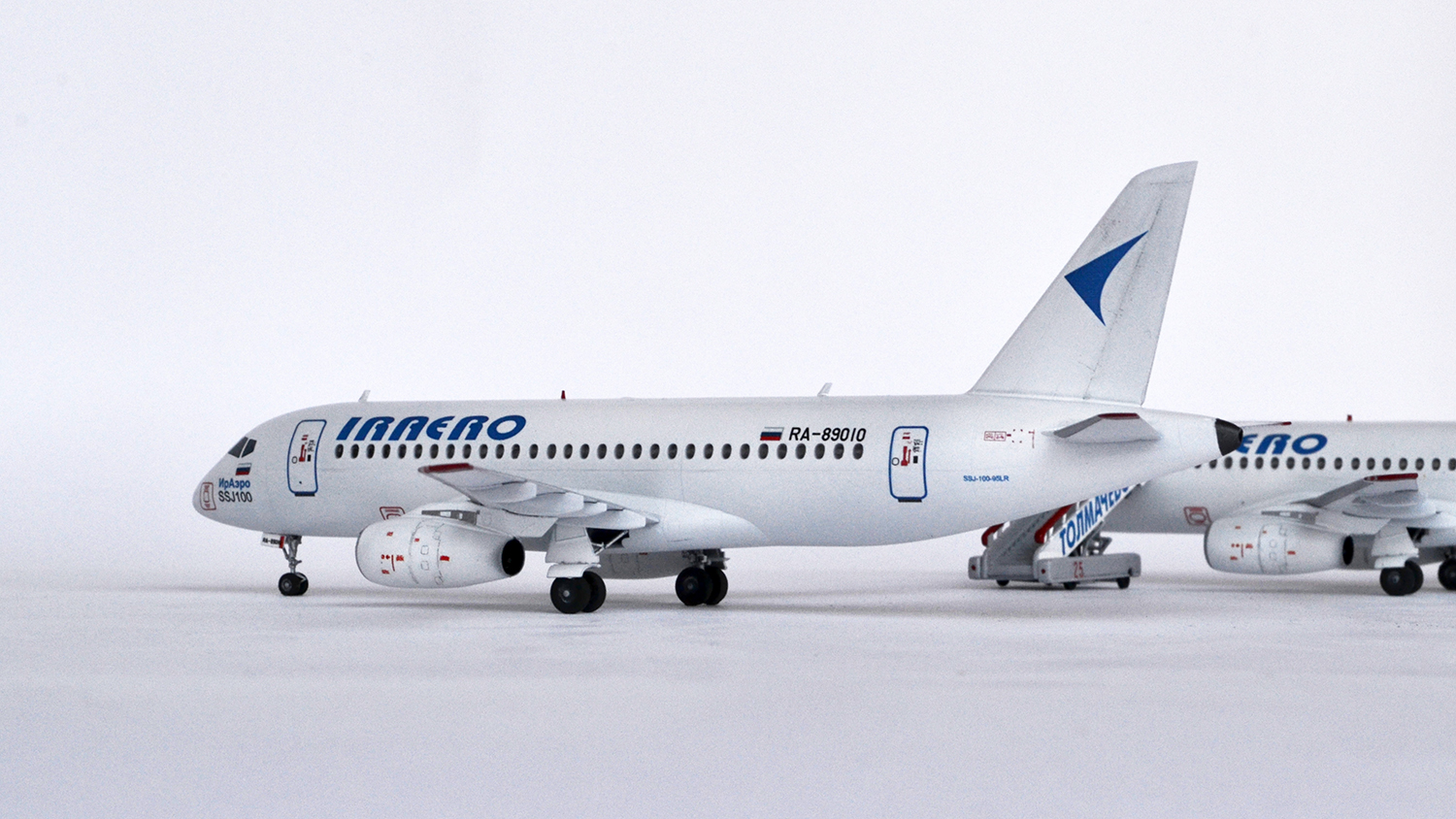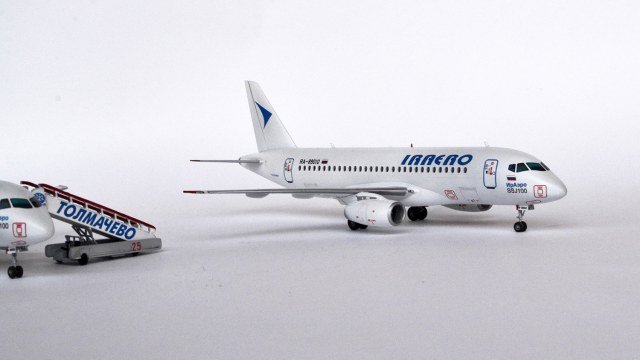 А какую из моделей оценивать - правую, или левую? Они ведь разные, у одной колёса домиком стоят... Текхничка жирнейшая и переконтрастная, надписи ИрАэро и ССЖ100 под кабинетом здоровенные. Остальное как всегда рассмотреть нереально из-за "правильного" ракурса.