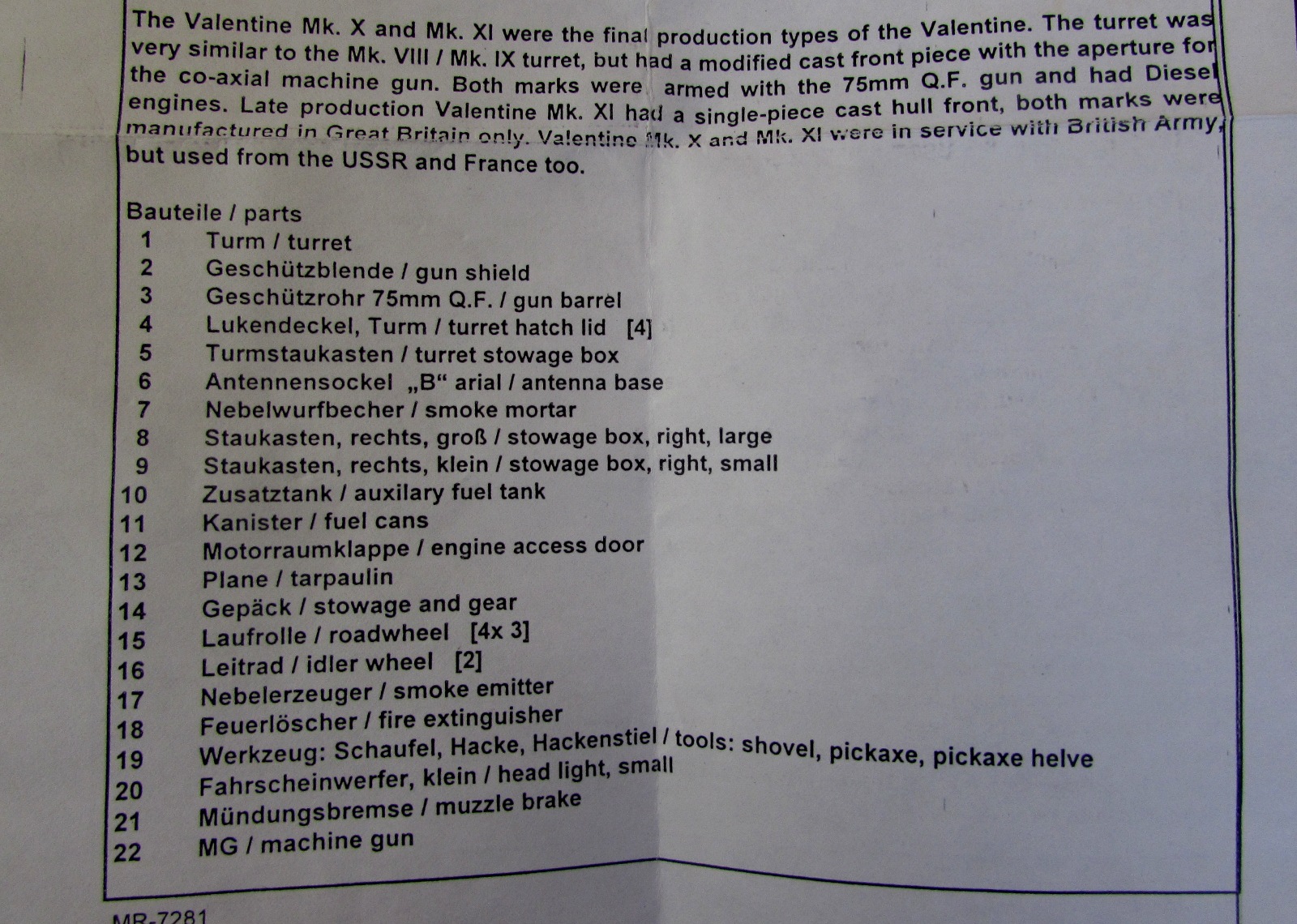 Valentine Mk. X/XI (Turm und Laufrollen)