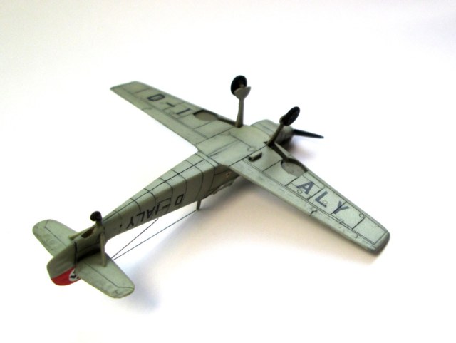 Красил АРКУСом. Долго не мог определиться с цветом, но всеже решил, что это РЛМ63, мало информации, а мнений у коллег много (от серебрянки, РЛМ02 до РЛМ63). Впервые попробовал высветлить, но из-за размеров модели этого почти незаметно. Сделал смывку, пачкать не стал, только выхлоп нанес.