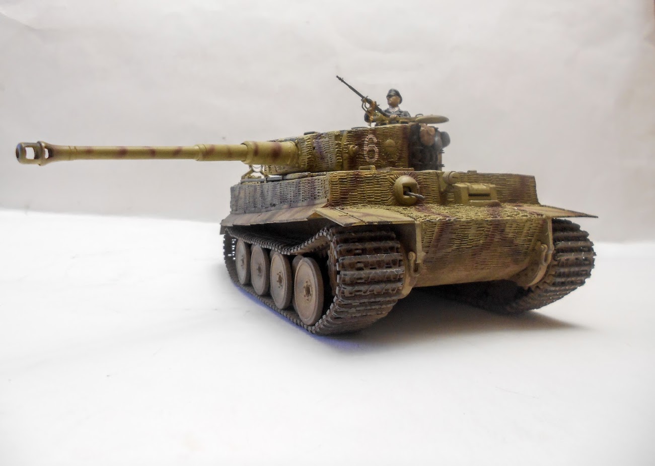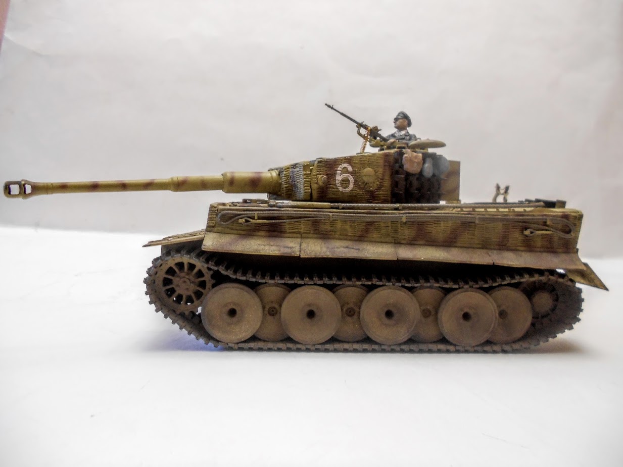 Приветствую! Позвольте представить модель немецкого тяжелого танка IIМВ Pz.Kpfw.VI tiger mid. production. Набор от тамии. Фототравление от eduard Циммерит самодельный. Первый опыт. Бутылки тоже самодельные. Делал в качестве эксперимента, решил оставить Краска и лак от тамии. Пигмент от Вайлдера. Декаль с номером 6 из аналогичного набора от драгона. На работу потребовалось 4 месяца, с перерывами. Набор понравился, однако следы толкателей на внутренней части траков и отсутствие Циммерита впечатление немного подпортило. Благодарю, что дочитали до конца ;)