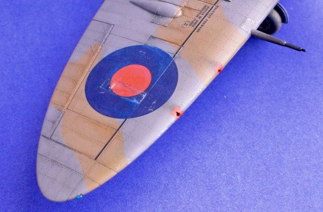 В качестве прототипа была выбрана одна из мальтийских машин канадского аса Джорджа Берлинга, на которой он совершил как минимум две из своей 31 победы. Мальтийские спитфайры отличались необычным камуфляжем: так как пустынный Mid Stone оказался слишком ярким и выделялся на фоне моря, то в полевых условиях поверх него наносился Sea Gray. Полноразмерных фото этого борта не нашел, поэтому руководствовался архивными фотографиями мальтийских спитов. Судя по ним, условия эксплуатации самолетов в тот период были очень далеки от идеальных, поэтому я от души поэксперементировал со следами эксплуатации и одновременно постарался соблюсти эстетическую составляющую, чтобы готовую модель банально было приятно держать в руках.